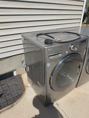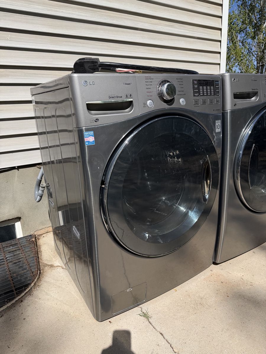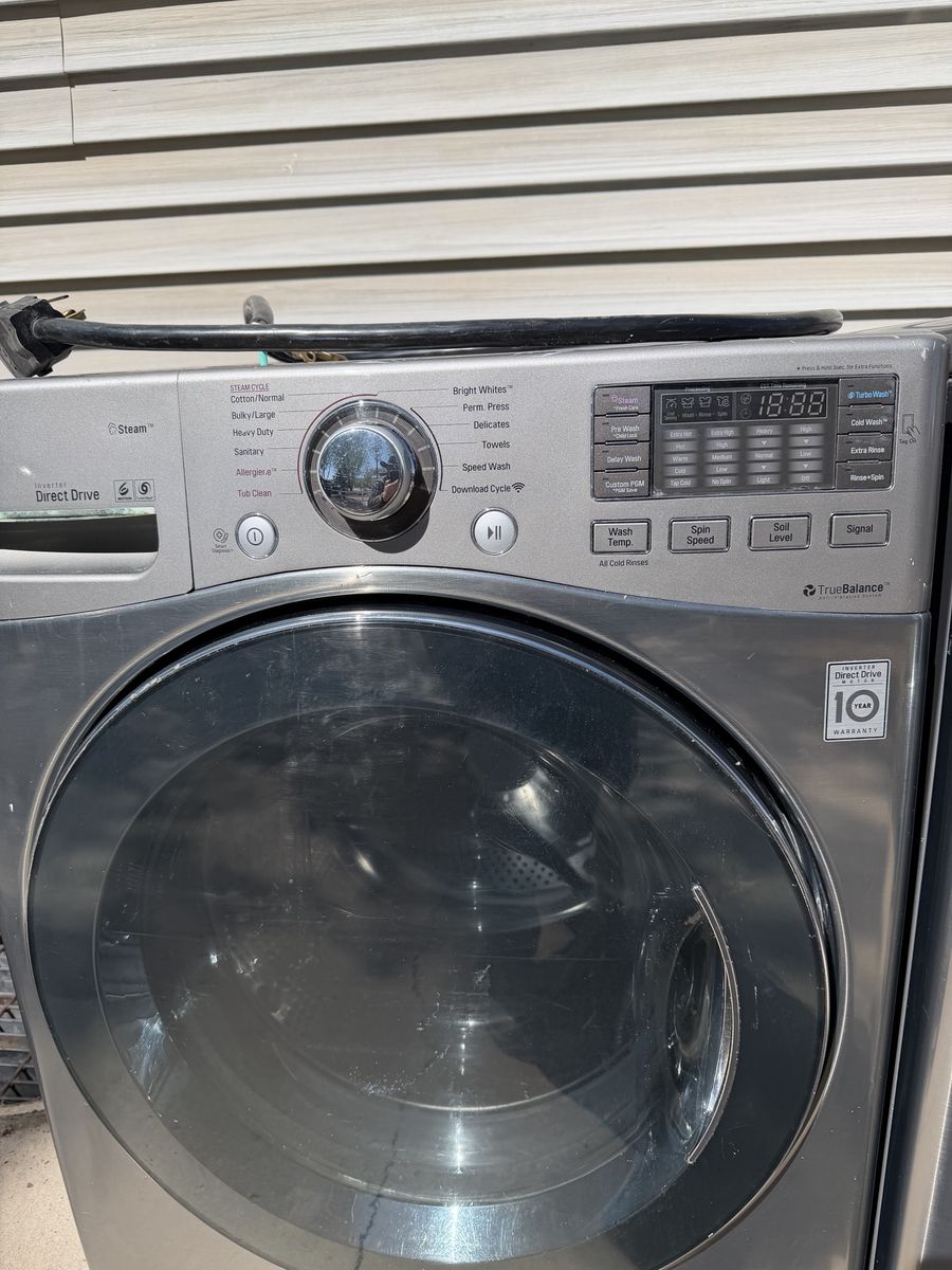 LG front loader washing machine with steam and true balance technology. Everything works great, has a few scratches on the top because it had the matching dryer on top of it. We moved to Southern Utah and have another set with no room in the house.