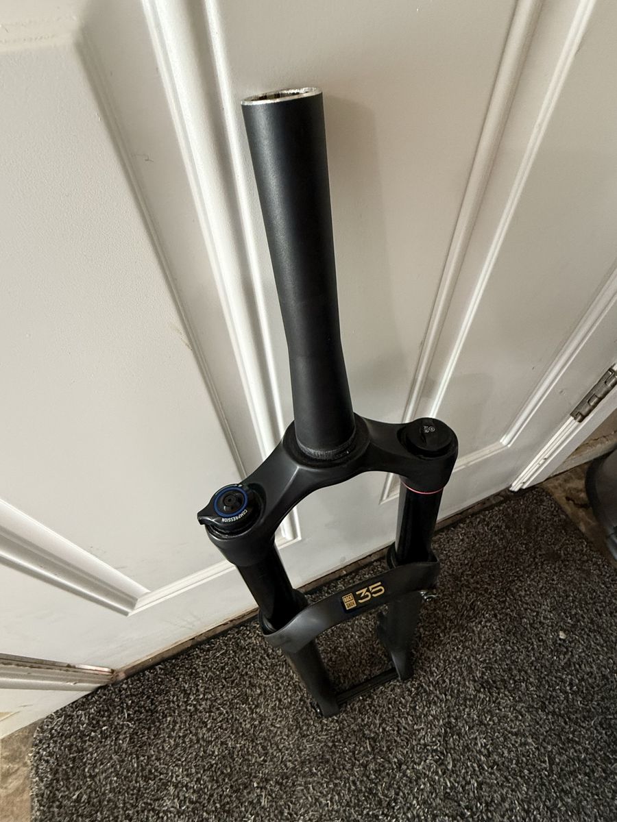 ApplePayRockShox 35 Gold RL with 150mm of travel and fresh graphics. Fits 29” and 27.5” wheels. 15x110 boost thru-axle. Uncut steerer tube so it will fit most tapered headtubes just fine. Good condition, pretty clean with no major scratches just some scuffs. No leaks. Stanchions are in perfect condition.