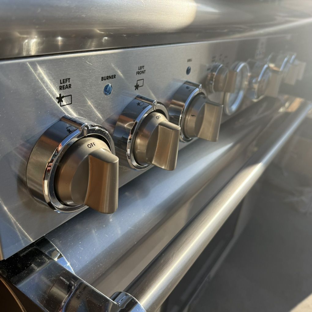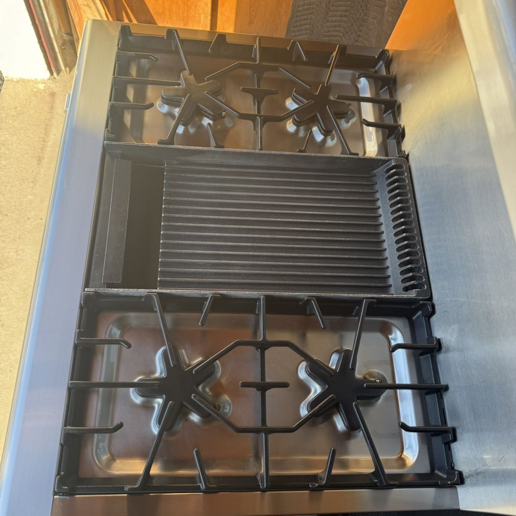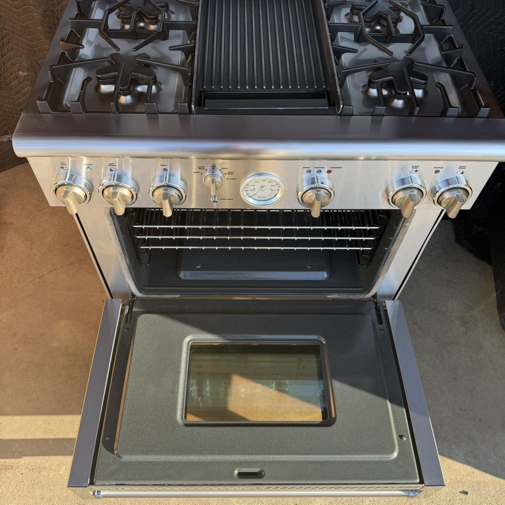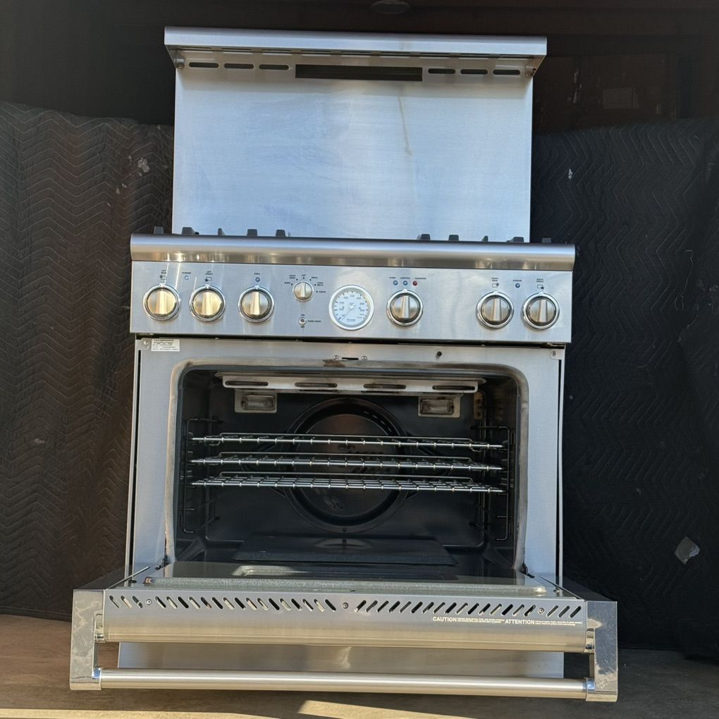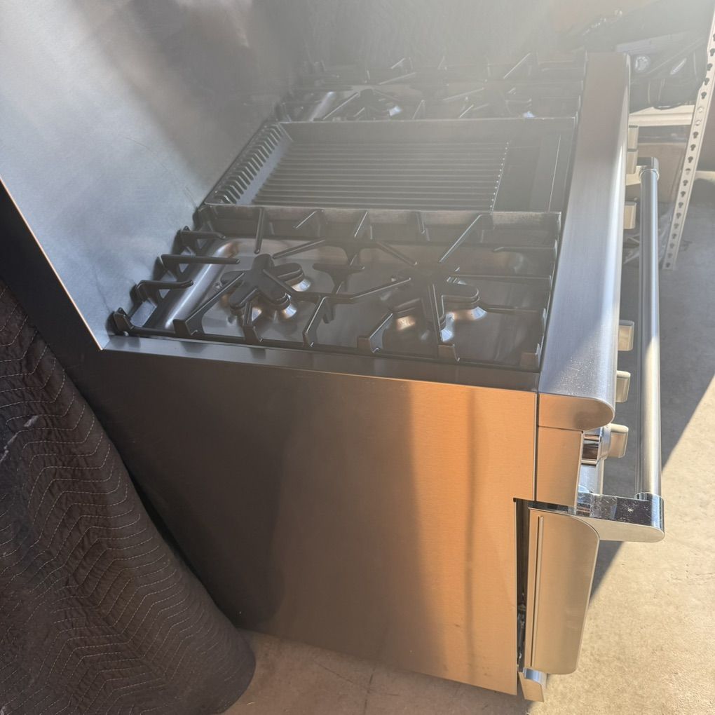 Used Thermador Pro 36 Inch Dual Fuel Range, 4 Star shaped sealed burners, Griddle , Electric Oven with Convection system. Set for Natural Gas and 220 v.