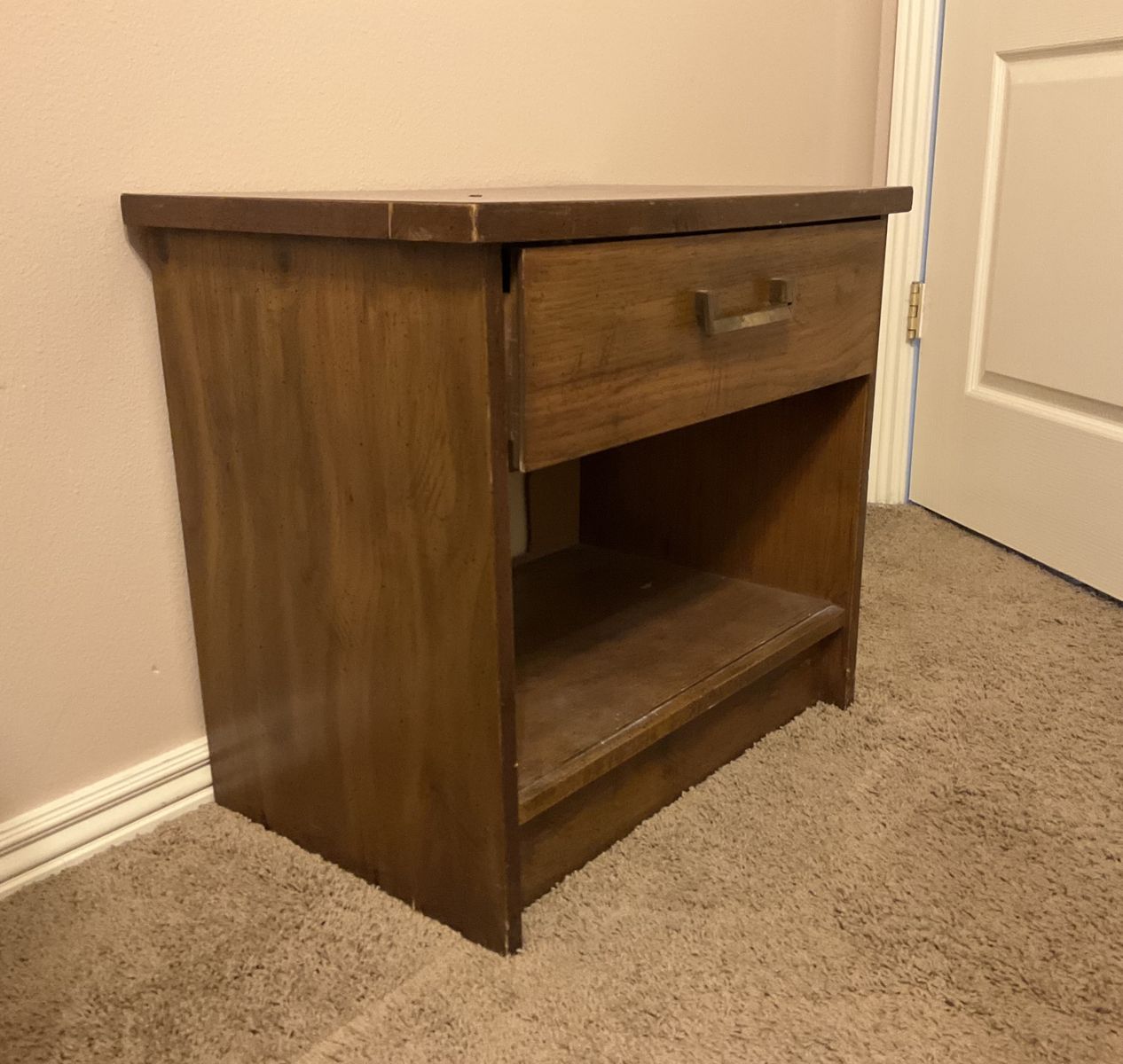 Pull-out drawer, bottom shelf with hole in the back to put cords through