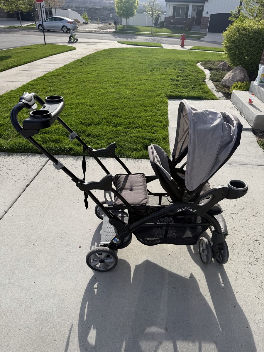 ZelleSelling a sit-and-stand double stroller in great condition. Perfect for families with two kids—one can sit comfortably in the front while the older child can sit or stand in the back.