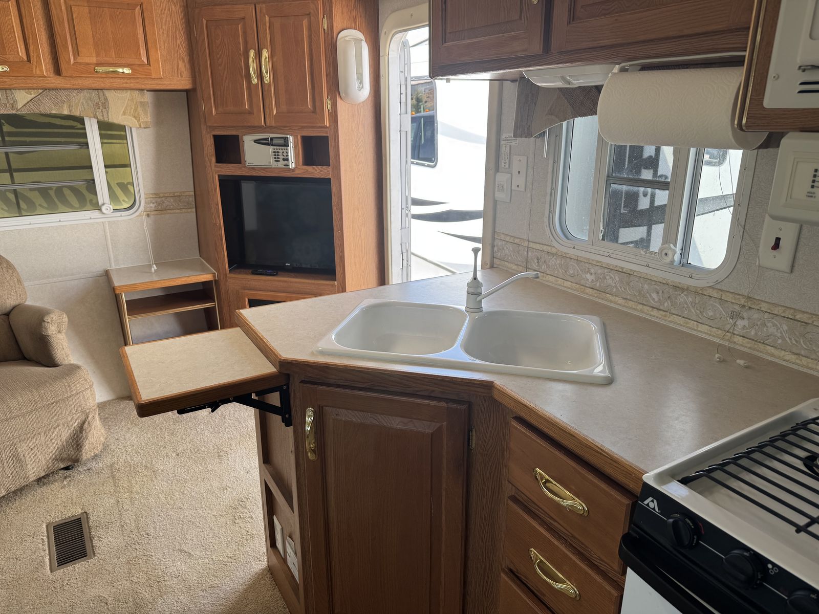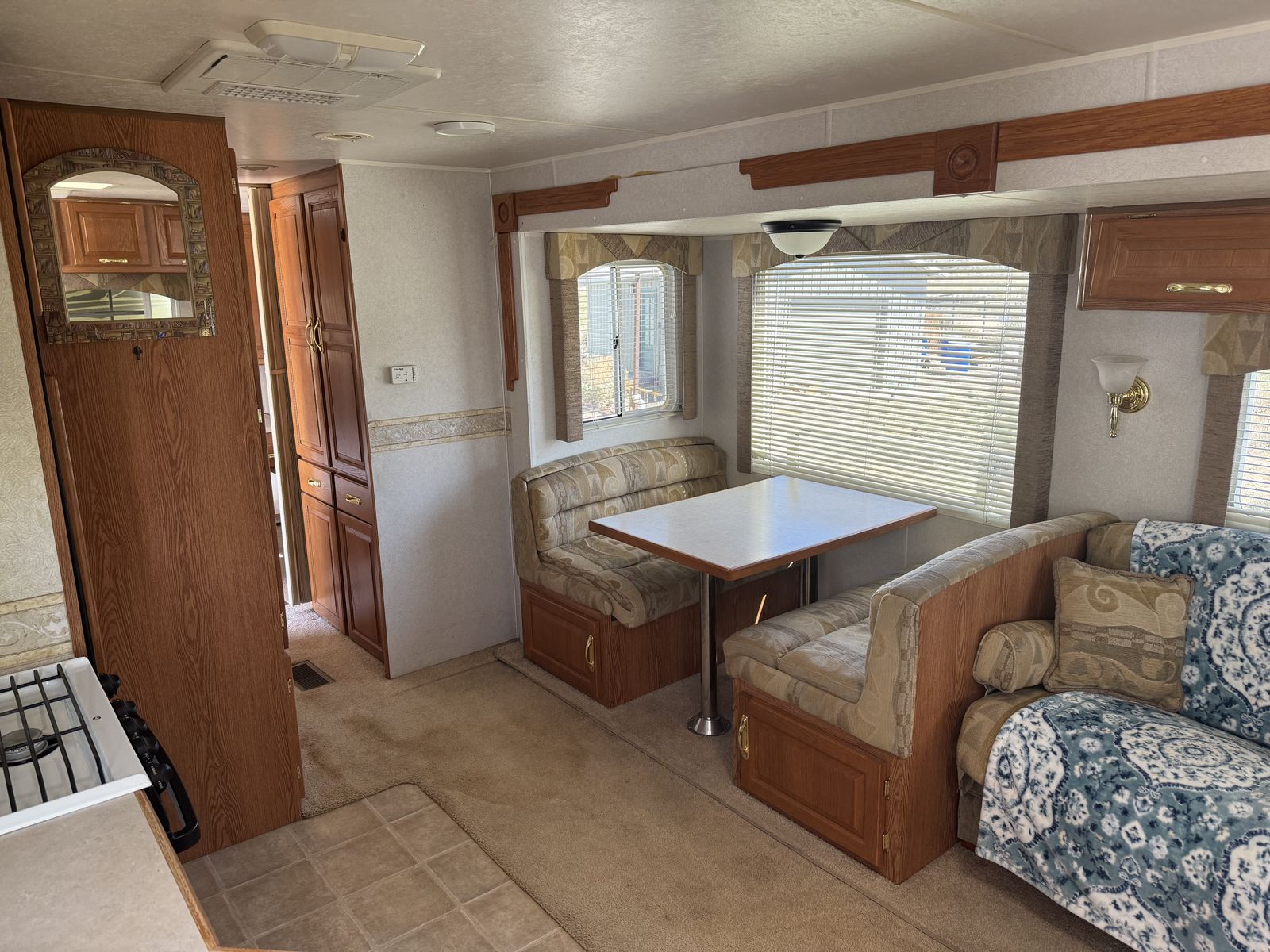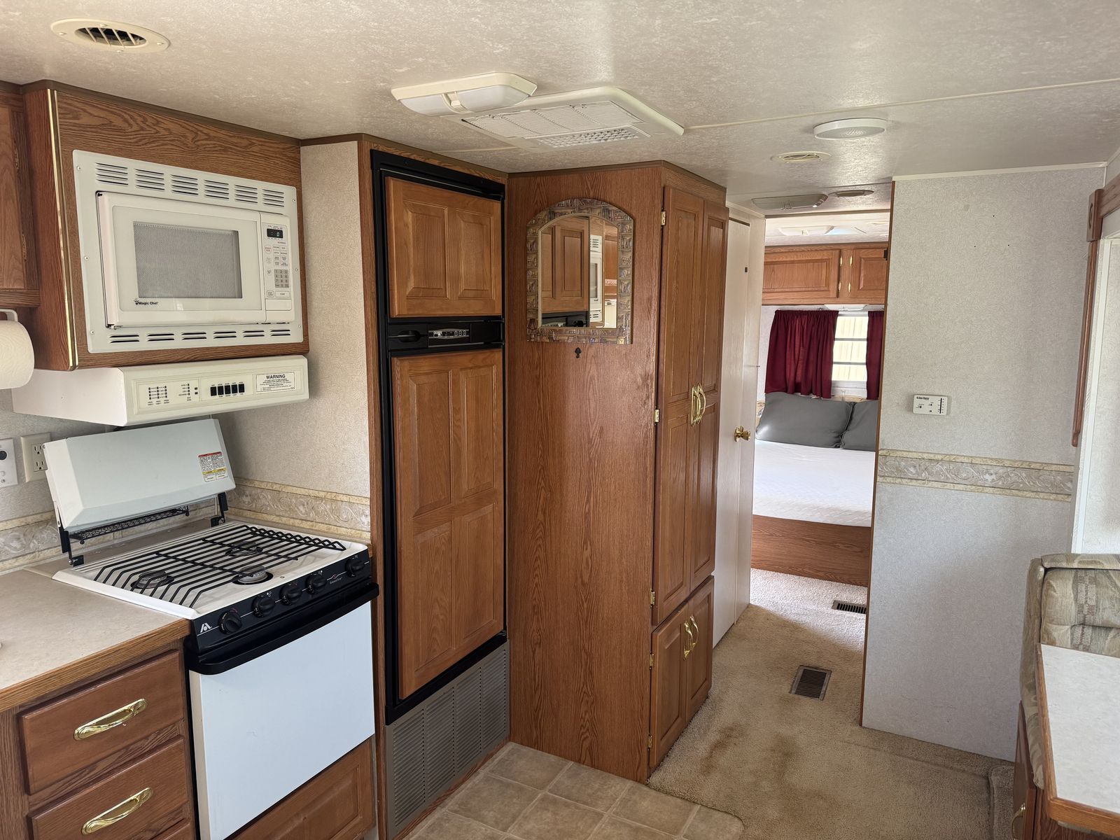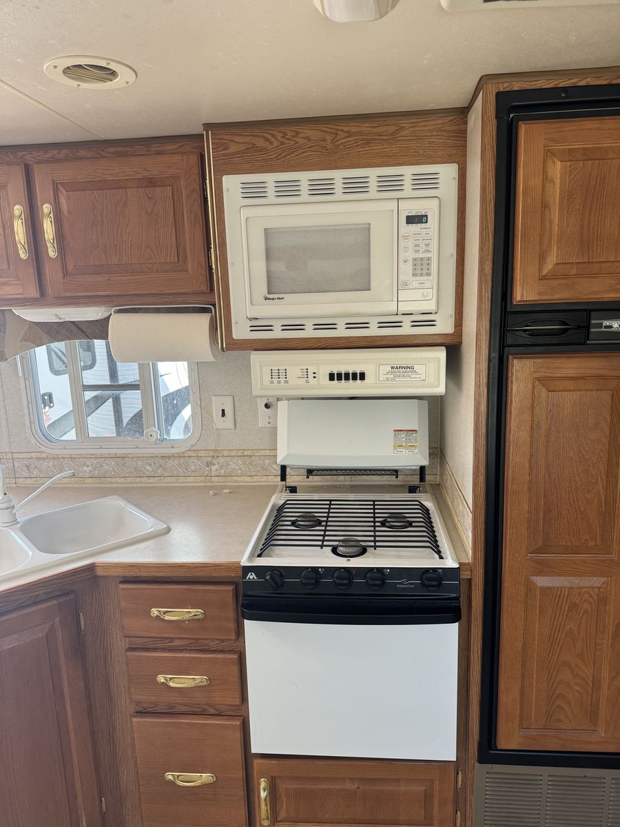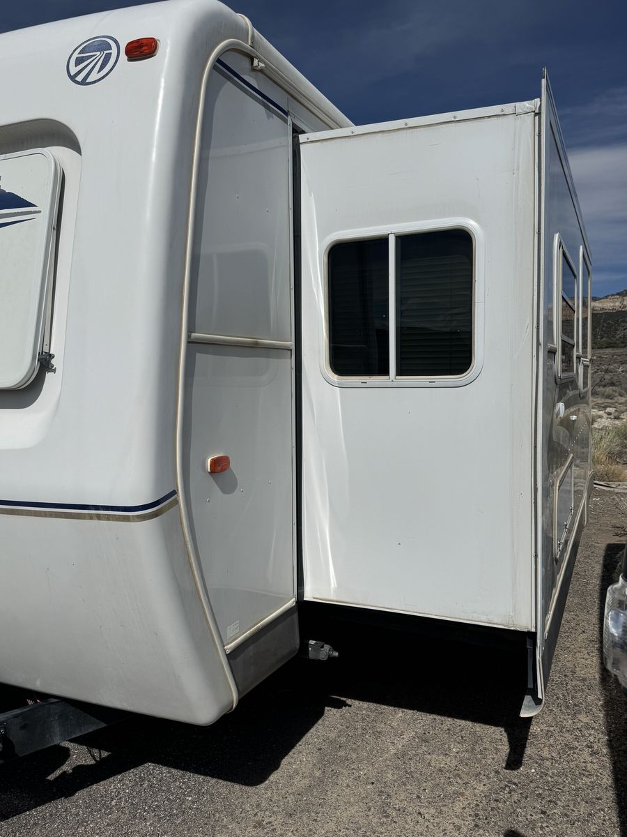 This trailer is loaded with luxury and the nicest of interiors. This is the nicest of its kind. It is watertight and ready to camp. It comes with all working appliances, gobs of storage inside and out. It has 2 exterior doors and a full made up rear bedroom. It has an electric jack, new battery, 2 large propane bottles and an advanced gas monitoring system. The awning is large and very nice. It is priced to sell, and it is ready to go and camp in. Come and see it I guarantee it won't last long. It is located just outside of Loa Utah near Fishlake.