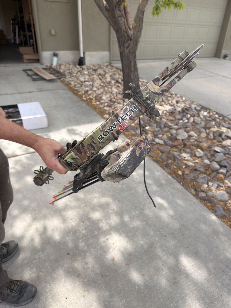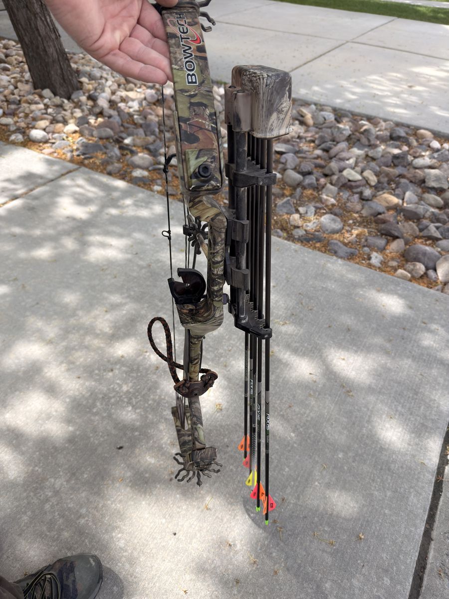 Venmo2007 BowTech TomKat compound bow. I believe it has 50-55 lb limbs and a 28 inch straw. Great youth or starter bow. comes with a whisker biscuit arrow rest, and the attached quiver and five arrows.