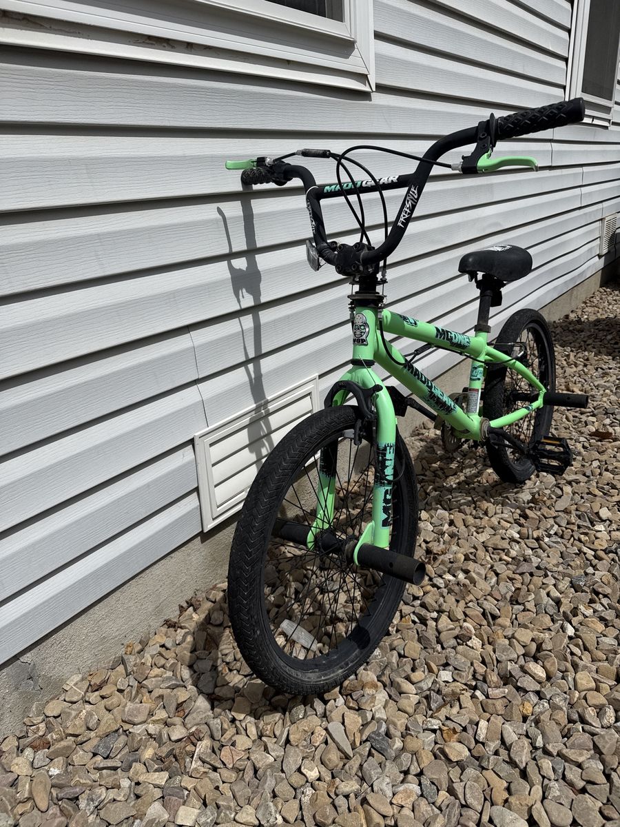 VenmoSelling this eye-catching Madd Gear MG One 20-inch BMX bike in vibrant neon green. Built with a heavy-duty gusseted steel frame, this bike is designed for durability and style. Key Features: Sturdy Build: Rugged steel frame and fork for maximum durability. Performance Wheels: Features 48-spoke wheels with freestyle street tires for a smooth ride. Safety First: Equipped with a front caliper brake and a rear linear-pull V-brake for reliable stopping power. Adjustability: Both seat and handlebar heights are adjustable to grow with the rider. Perfect for kids ages 7-13 (fits riders approximately 4'2" - 5' tall).