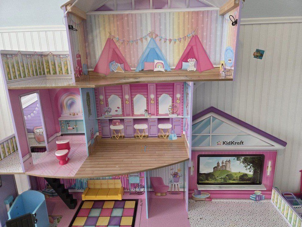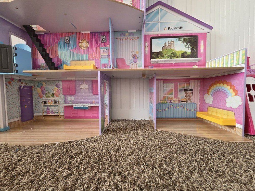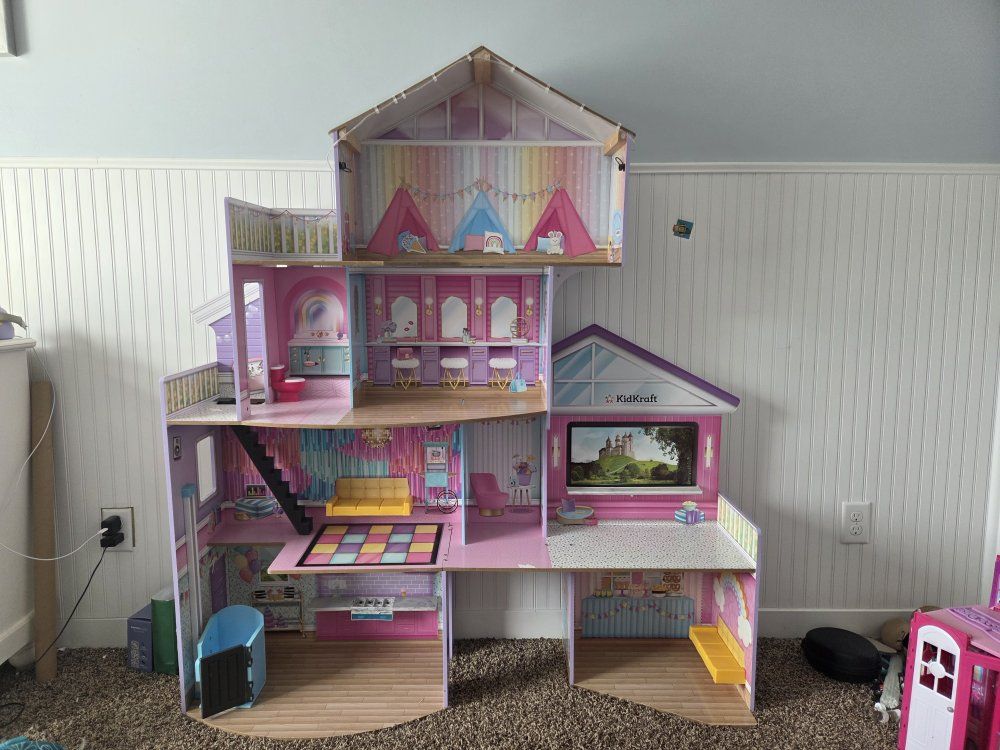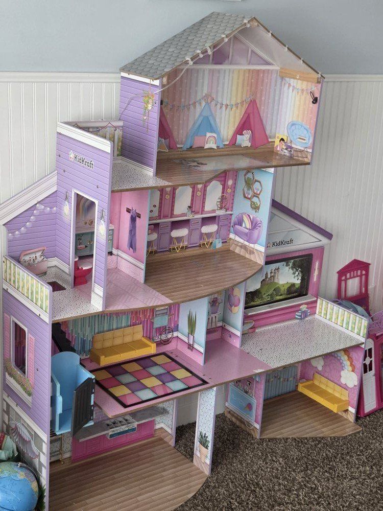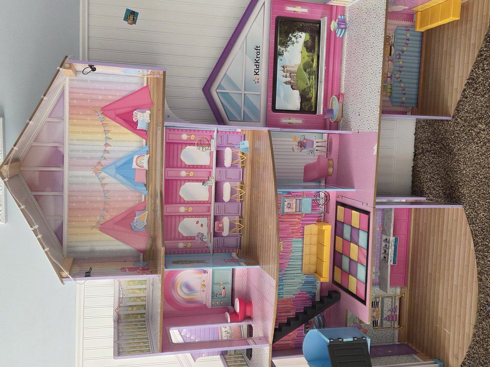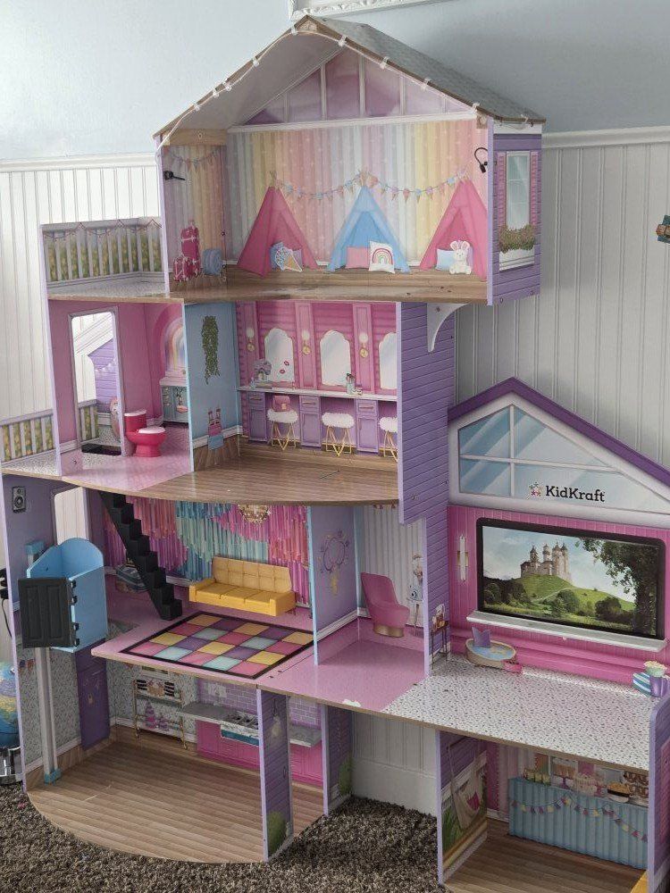 VenmoThis adorable doll house has an elevator and working lights on the border. Has lots of rooms and opportunities for never-ending play! The very little wear there is, is posted in the pictures. This is a very sturdy playset. Comes with a few accessories as well.