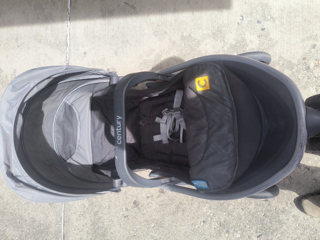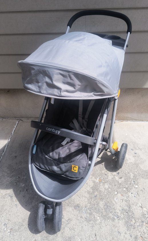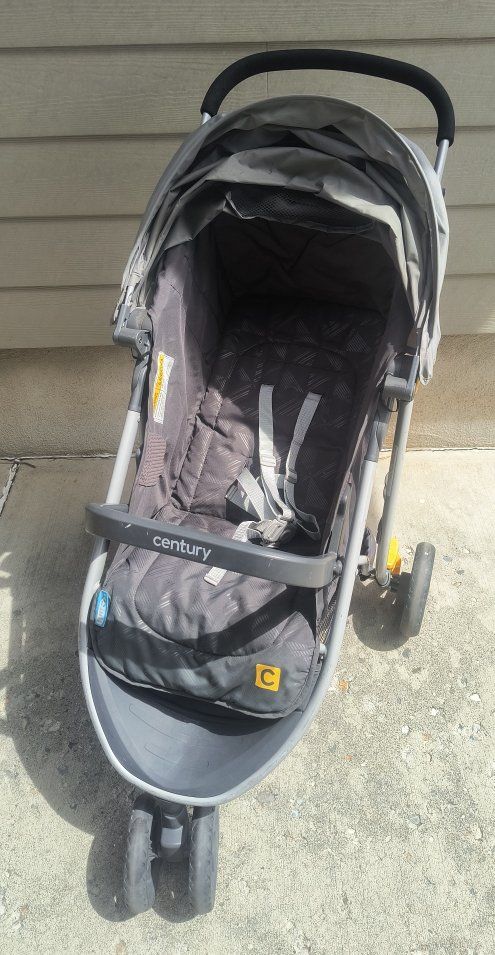 Century 'Stroll On' baby stroller in good preowned condition. Single seat, 3-wheel, and lightweight, and yes it collapses :-) See pics for best description of condition. Thanks for looking and have a great day.