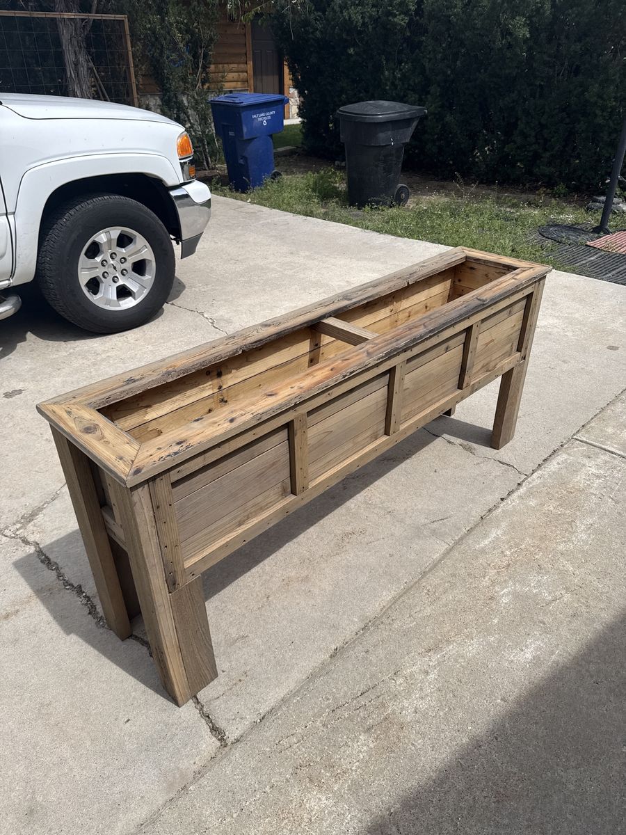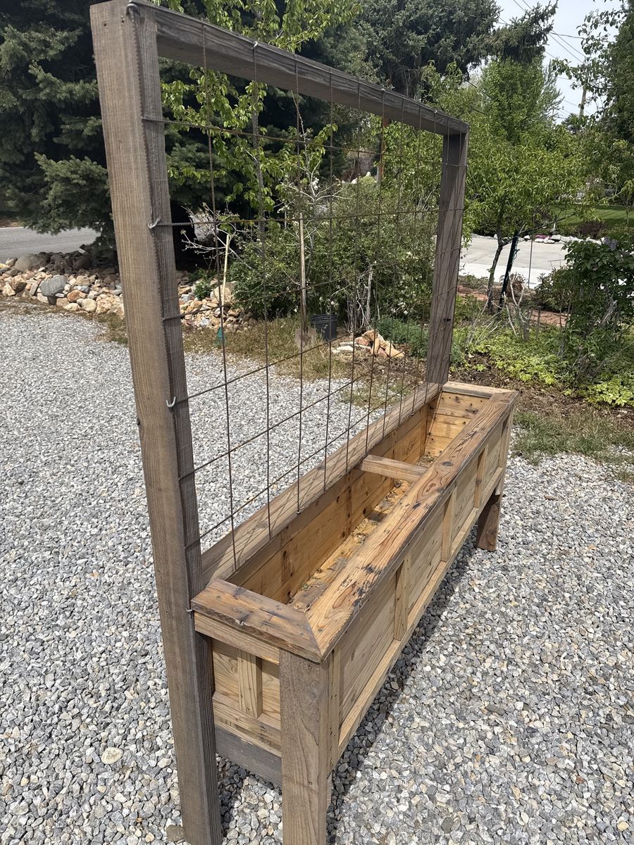VenmoMade with reclaimed cedar. Excellent for the urban farmer. I have some with trellises and without and can customize stain finish. Thanks for looking. $250.00 w trellise $200.00 with out.