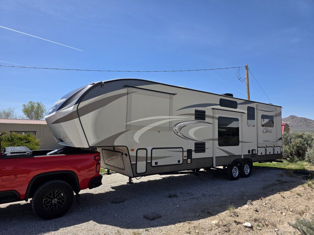 Venmo37 ft 5th wheel. Everything works great. Roof maintenence completed every 2 years and is in great shape. 11,700 empty weight. New tires 2 years ago and were upgraded to 16 ply, and wheel bearings were gone thru new grease and seals. I have less than 200 miles in last 3 years. I have had no problems with this trailer and I purchased it brand new from the dealer. I have an Anderson hitch for gooseneck ball in towing unit that i will send with trailer. This trailer is a little taller than 13 ft and pulls beautiful. 4 slides work perfectly with no issue. The trailer is a 4 seasons unit and rear external storage is 80 sq feet. It has front storage, auto leveling system with remote that will auto level, open slides and turn on exterior lights. Lighted awning,external shower, and external propane hookup. There is some exterior fading, but unit is in great shape, inside and out. does need small stripping that is on corners but minor. Used trailers in this condition are a bit more expensive. We dont use it anymore and We really want to see it go to someone that will use it and love it as much as we have. Your welcome to inquire. If you are interested let me know I will be happy to text you any photos. No trades! I have a new one that fits us perfect so I dont need another one.