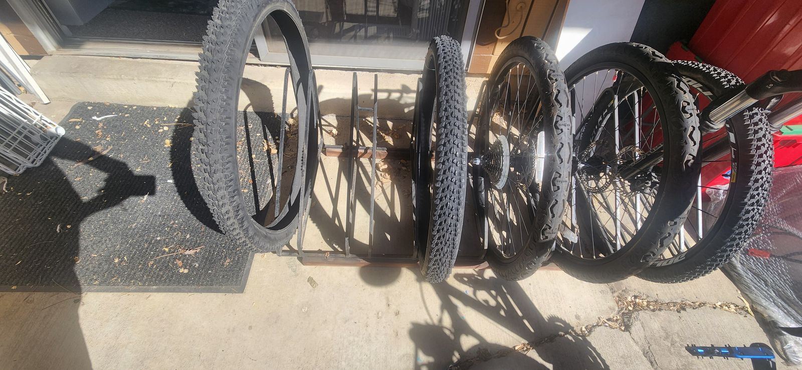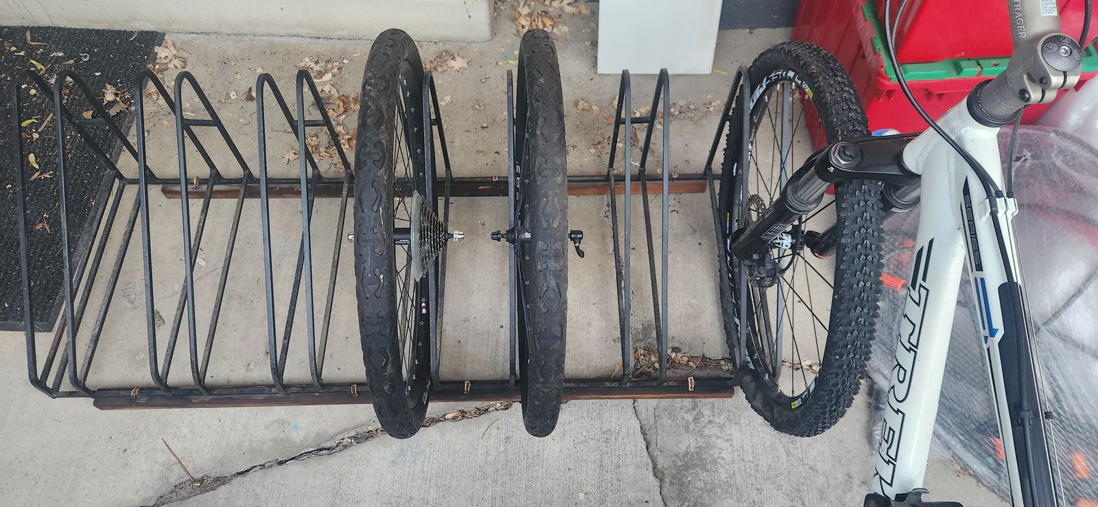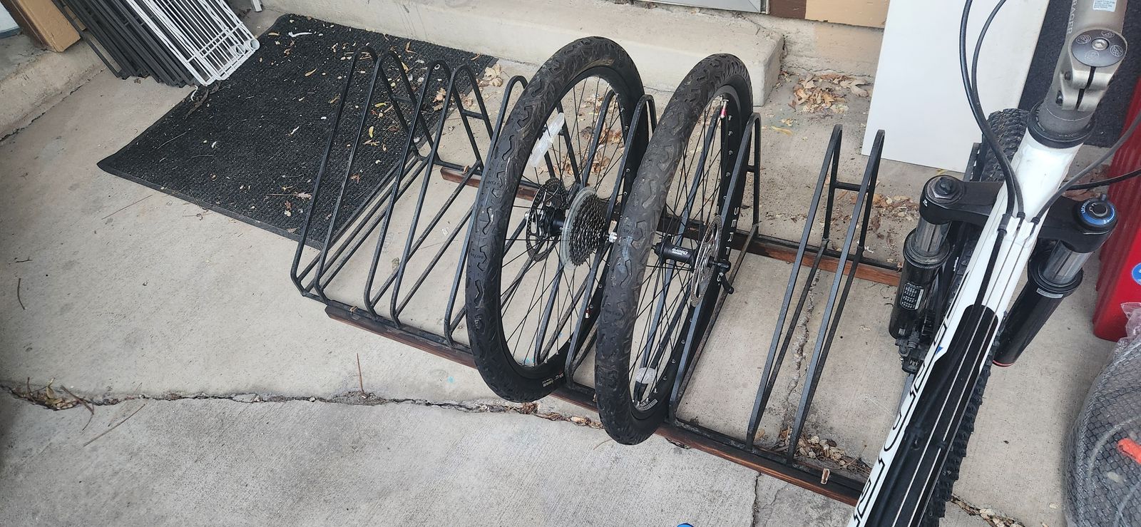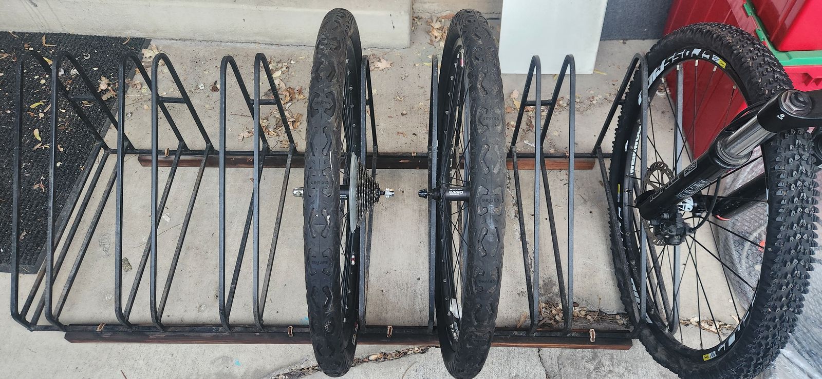 We had 2 mountain bikes and 4 additional wheel sets in there and it kept them upright with no issues.