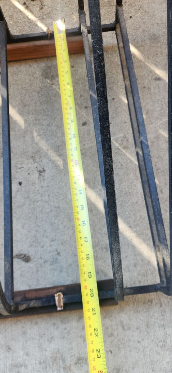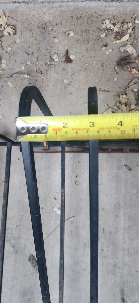 Each pair of slots are ~2.5” wide between the upright bars, and each set is spaced ~4.5” between the next set