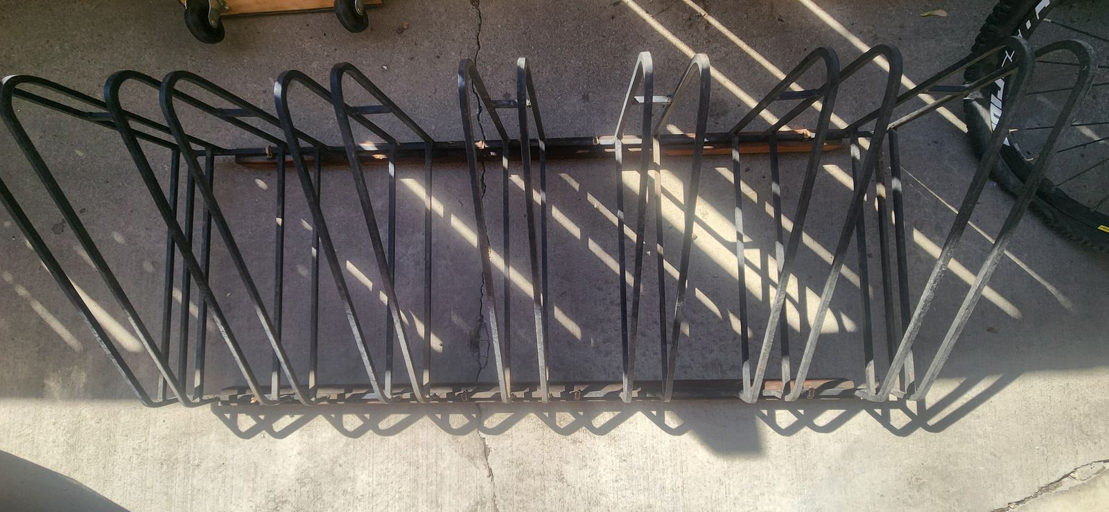 It has 7 sets of upright slots for bikes and wheels