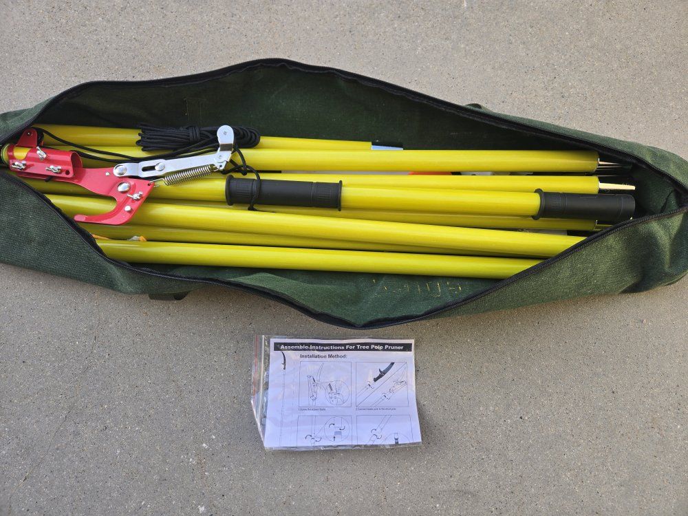 VenmoBrand new unused professional tree pruning kit. Goes up to 26 feet. Very high quality. Comes with saw blade pole, scissor pole with pull string, 8 epoxy resin telescoping extension poles with metal threaded ends, blade cover, replacement anti-jam saw blade, gloves, and a durable canvas storage bag. Connect as many poles as needed. Converts from pole saw to a handheld trimmer. Quick assembly. Cash or Venmo only please.