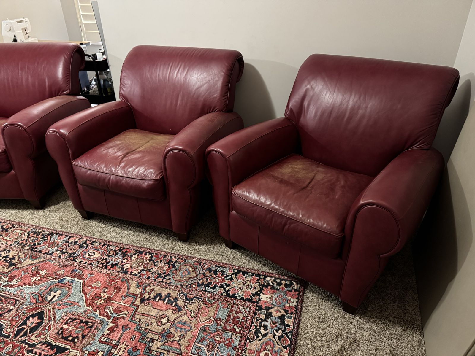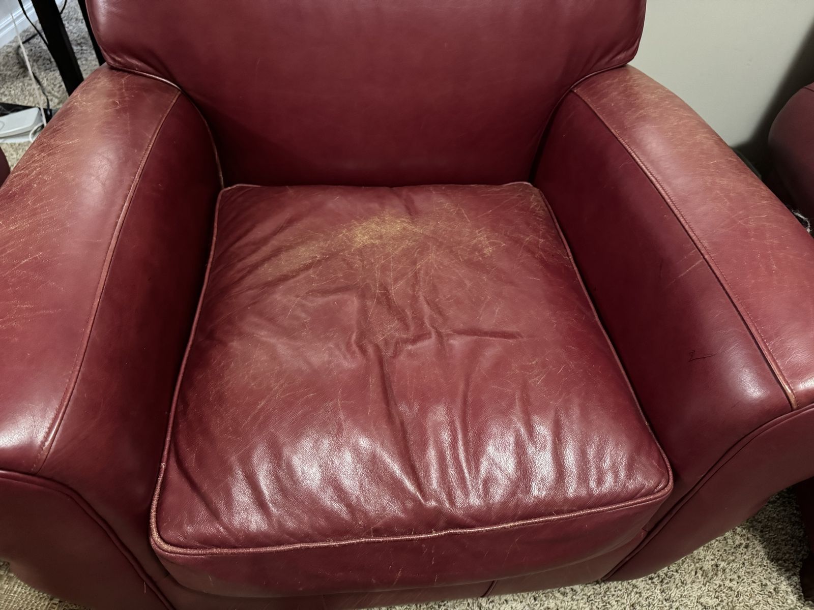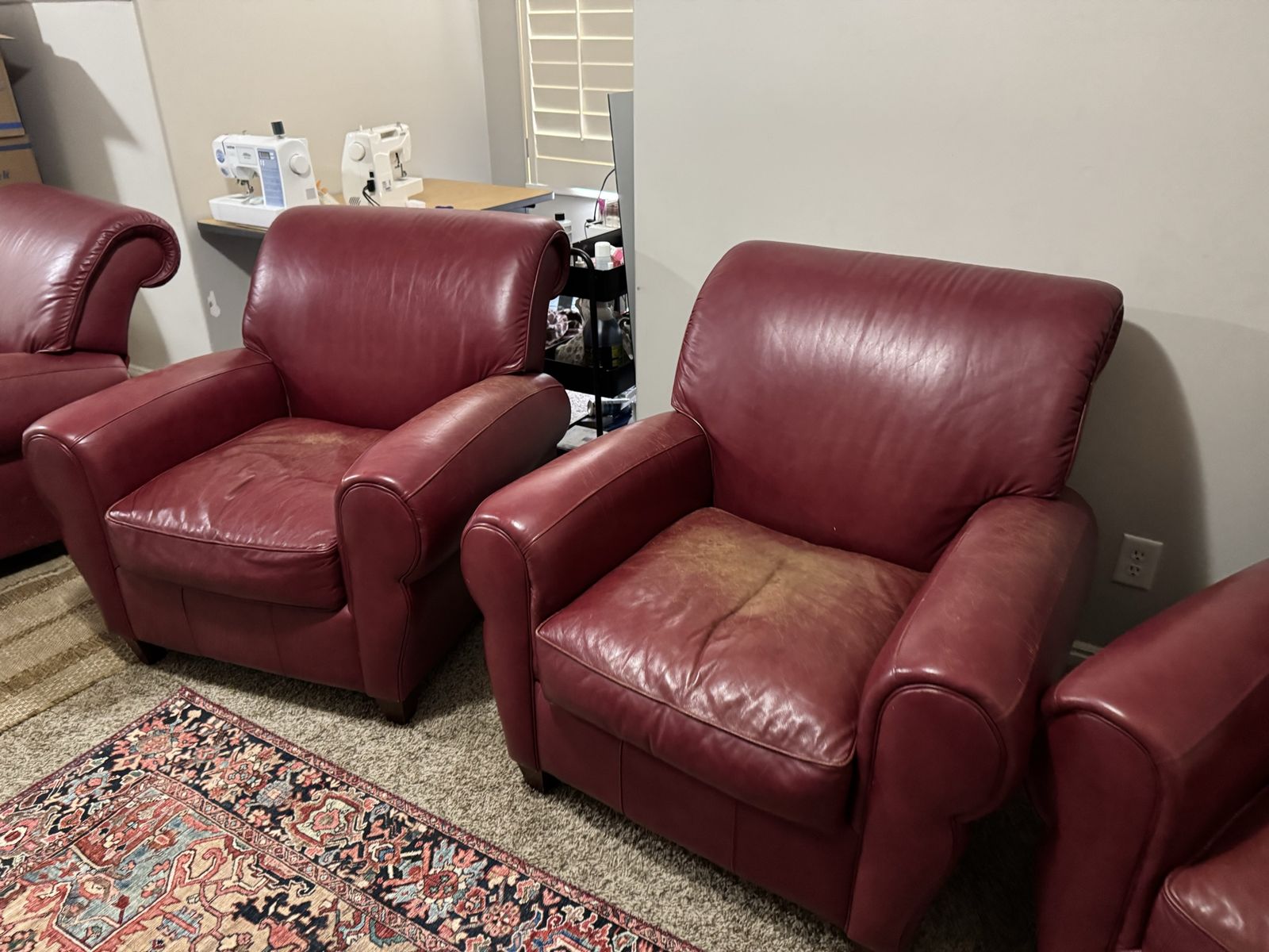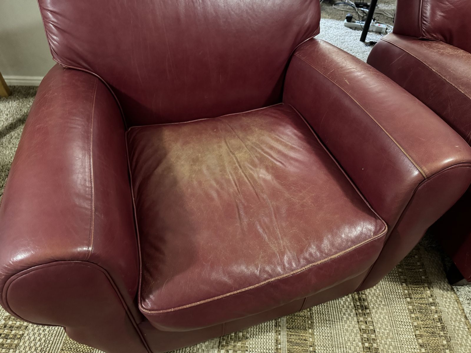 ApplePay$75 each. The people we got them from had dogs so there are some scratches. See pics. We have not tried any leather conditioner and have decided to go a different direction for furniture. If you know how to fix leather or want a little project, this is for you. Pick up in Cedar Hills.
