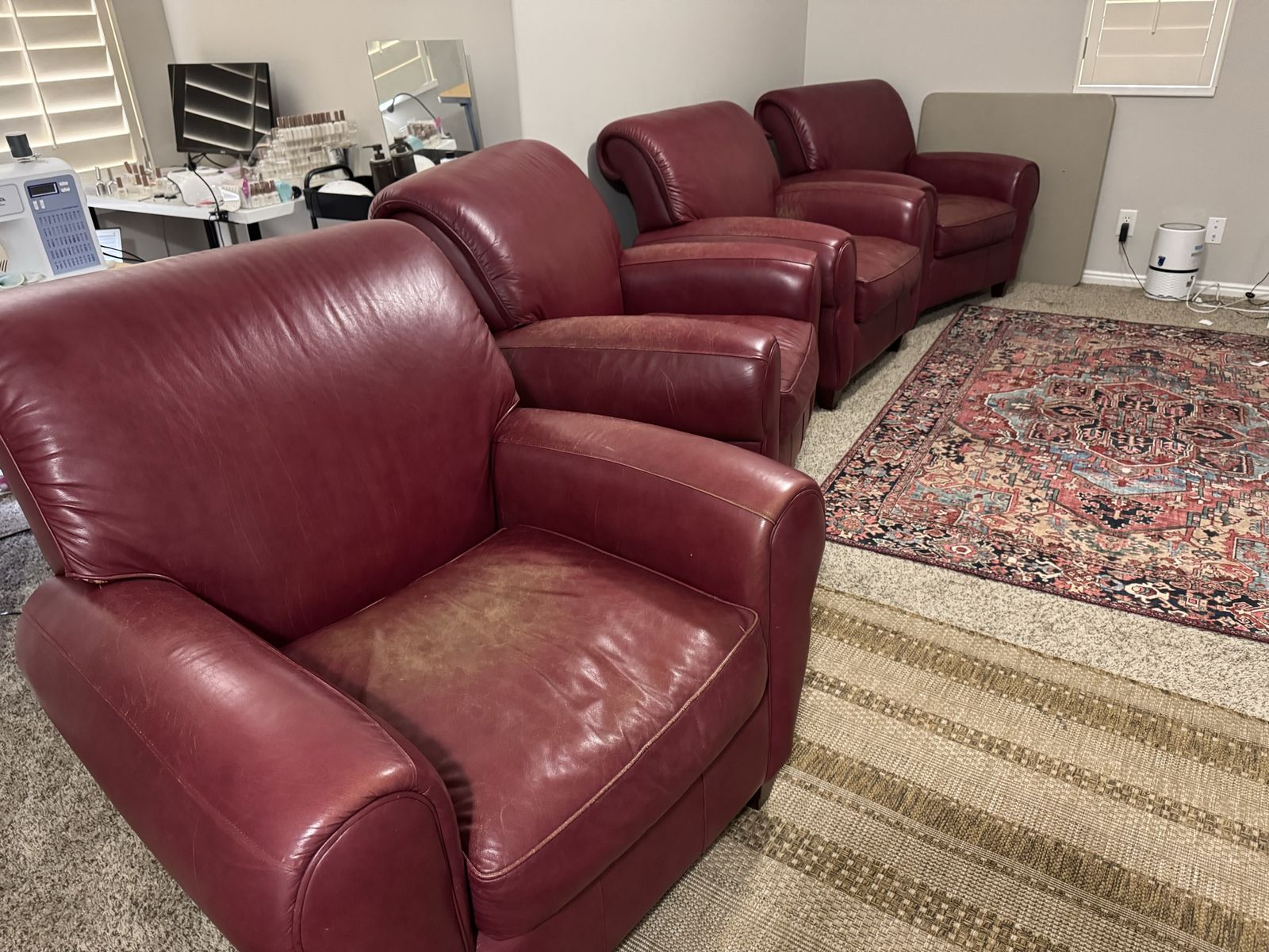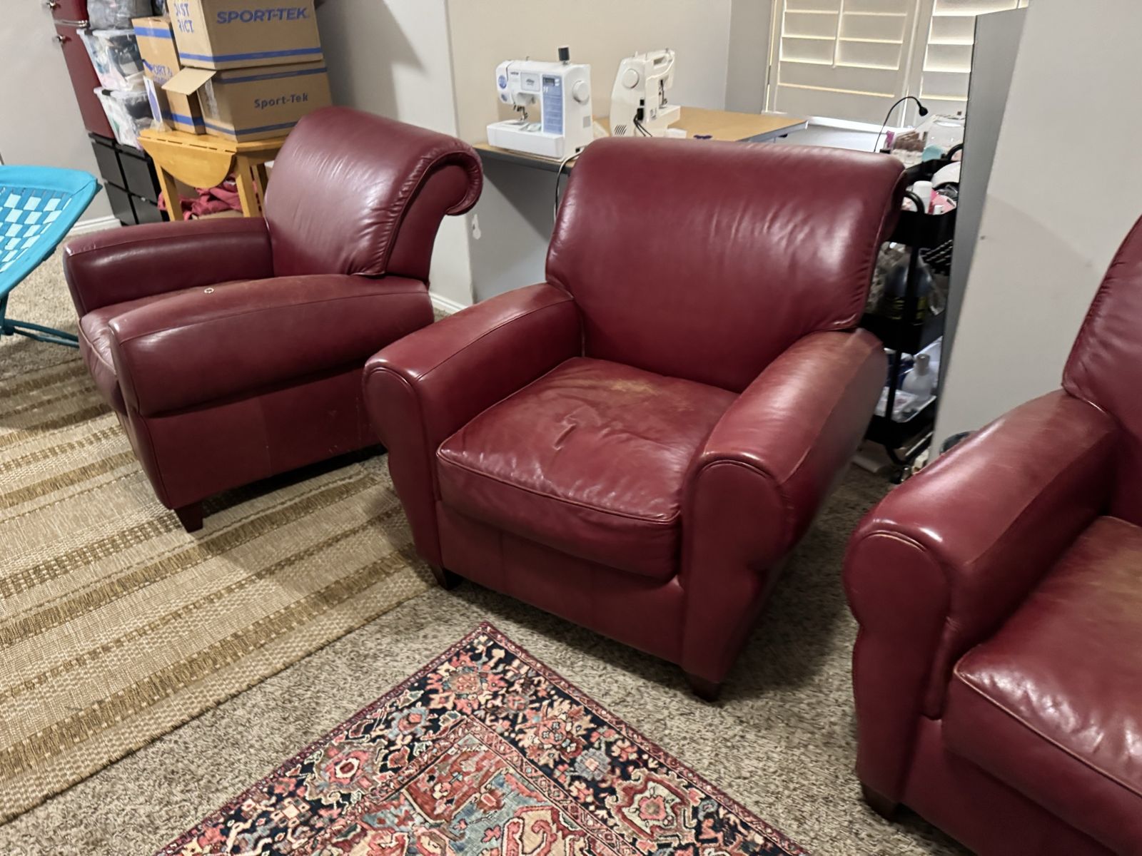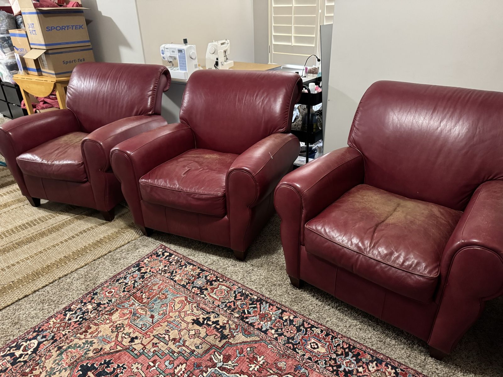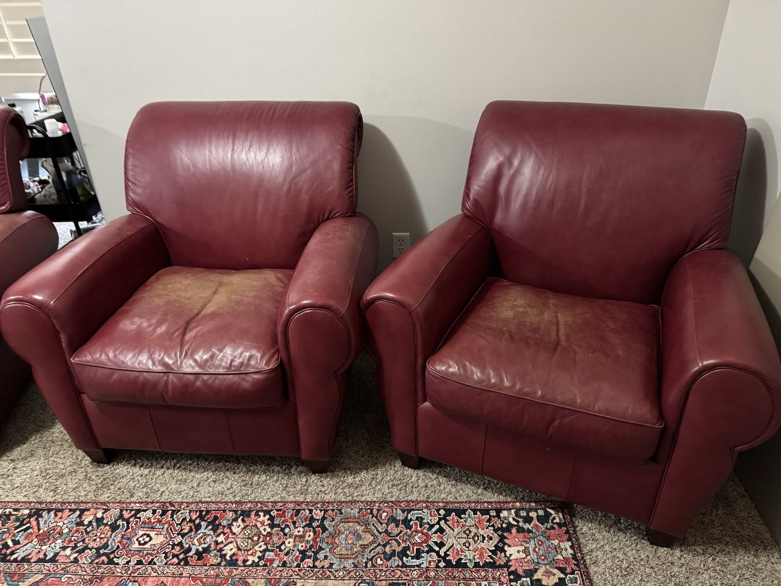 ApplePay$75 each. The people we got them from had dogs so there are some scratches. See pics. We have not tried any leather conditioner and have decided to go a different direction for furniture. If you know how to fix leather or want a little project, this is for you. Pick up in Cedar Hills.