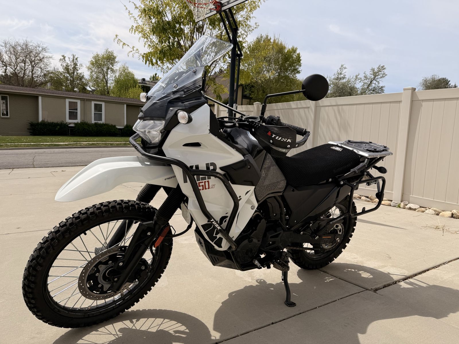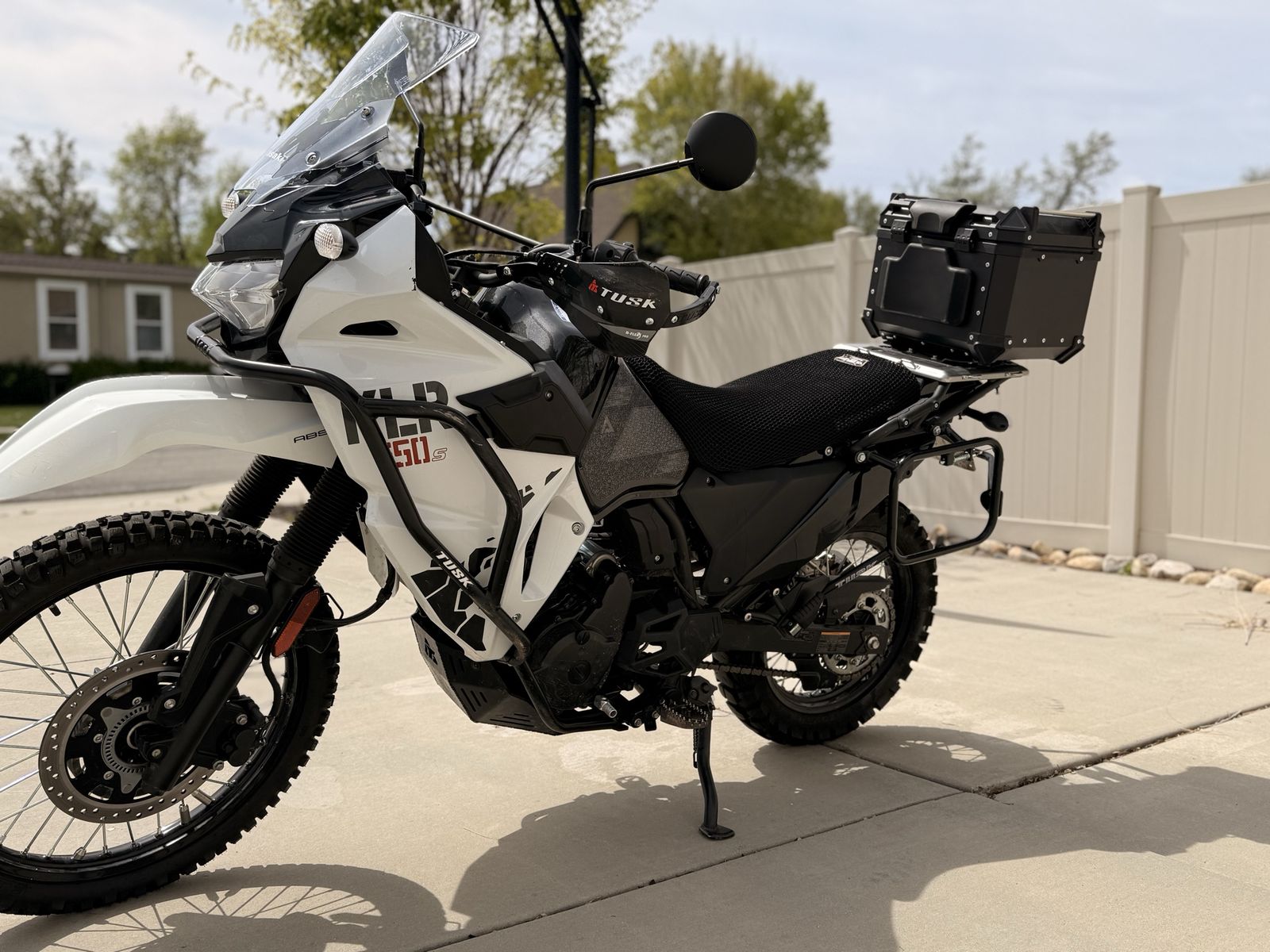 Improvements: Tusk 2Track tires D-Flex Pro Handguards Tusk Aluminum Skid Plate w/ low profile drain nut Tusk Crash Bars and Pannier Racks Tusk shift lever and Billet Aluminum Foot Pegs Tusk Fender Eliminator Kit USB Charger Thermobob, includes engine temperature gauge (evens engine temp for longer life) Tank stickers (grip) Wind Rider Seat Cover Top Case Quad lock phone mount Cash, Cashiers Check, Venmo