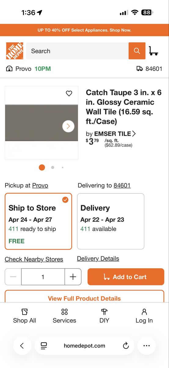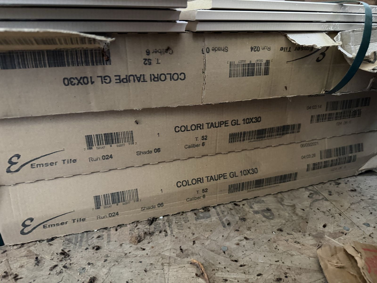 ZelleEsmer Tile in the color Taupe. Measurement are 10” x 30” Majority of tile are broke in middle. Still some tile not broken.
