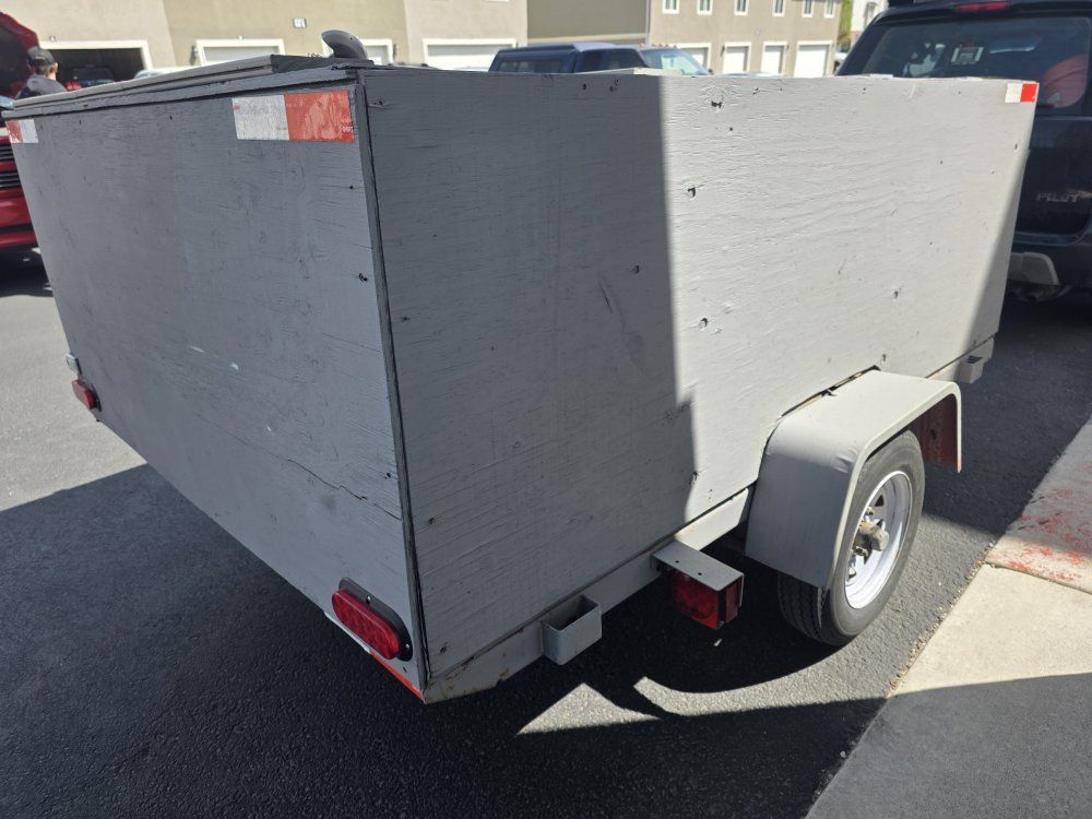 VenmoLittle almost 8 feet long and 5 wide Good shape, used for construction. Has interior lighting with switch, battery, and solar battery charger. Top has trex boards used for loads to slide material on and off easier. 7 prong electrical connection, new hitch and tounge late last year. New lights, passenger rear doesn't have running for some reason but works with hazards, turn signals etc. inside is covered with LVP for sliding tools easily in and out. Want it sold quick $300 OBO