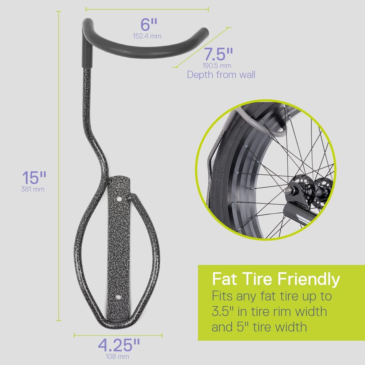 • (1) Heavy-Duty Wall Hanger (Fat Bike Compatible) Fits tires up to 5” wide + protective wall mount Asking $35