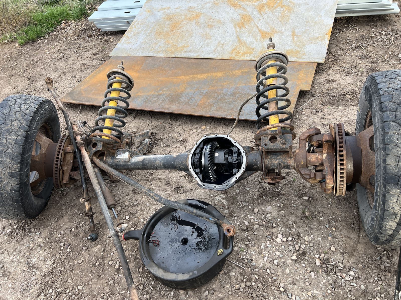 PayPalFront axle out of a 07 dodge ram 3500 HD with 3.73 gears, opened it up and it's clean in side , no metal shavings or wear on the pinion and ring gear. Has greasable ball joints and everything is tight. Comes with , front coil springs, track bar, linkage . Brake lines and tone ring wire.$1,000 obo