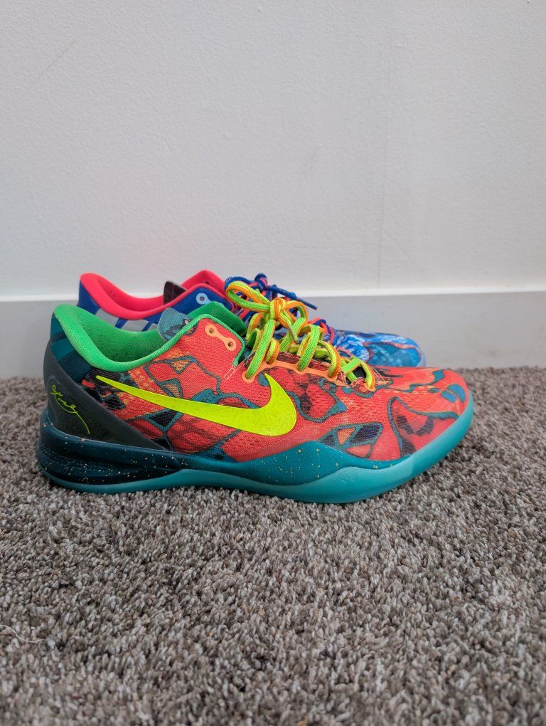 Shoes are size 12 but fit more like an 11. Shoes do not come with box. Happy to answer any questions or send more detailed pictures.