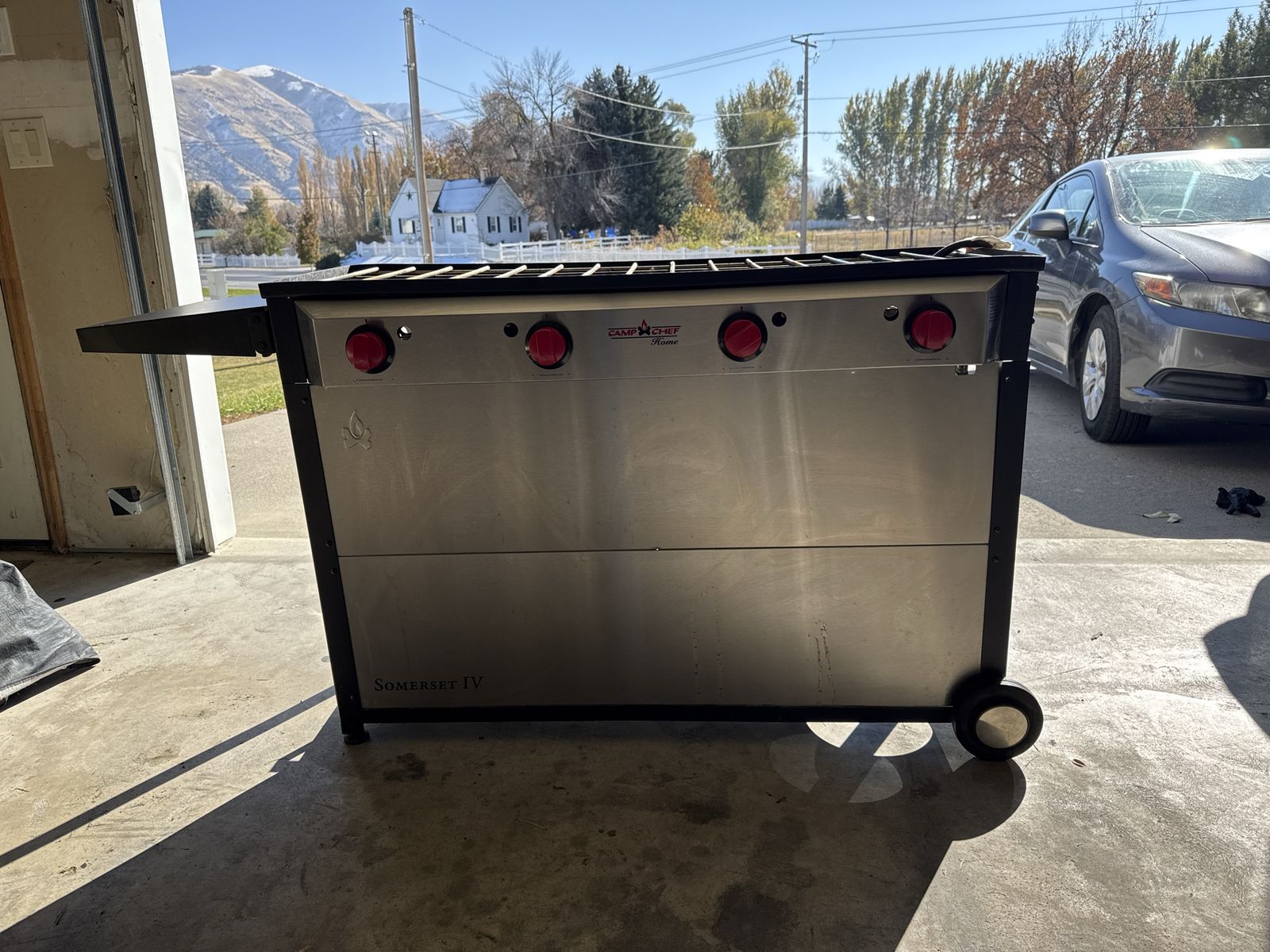 ApplePayCamp Chef 4 burner stove. Works fine. I haven’t used it for a while and it’s just taking up space in my garage.