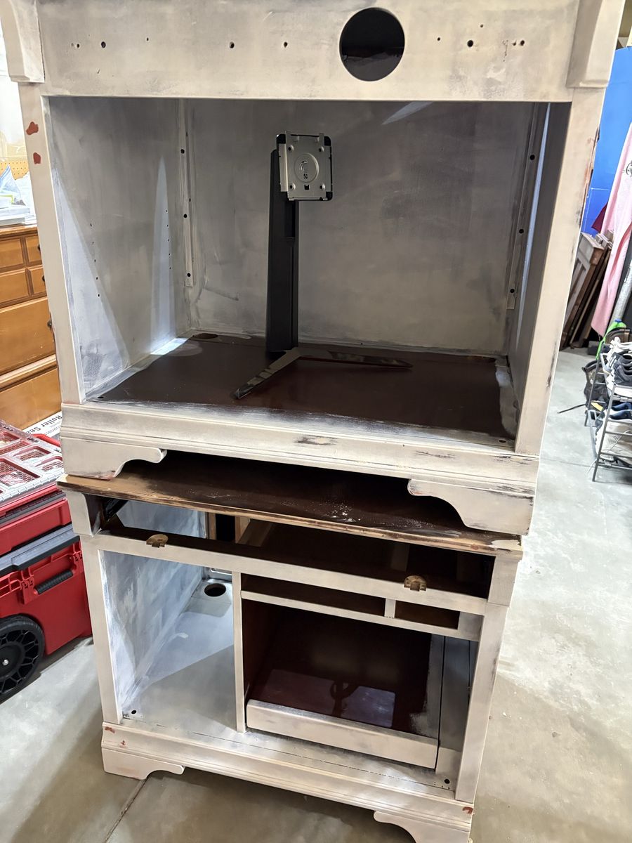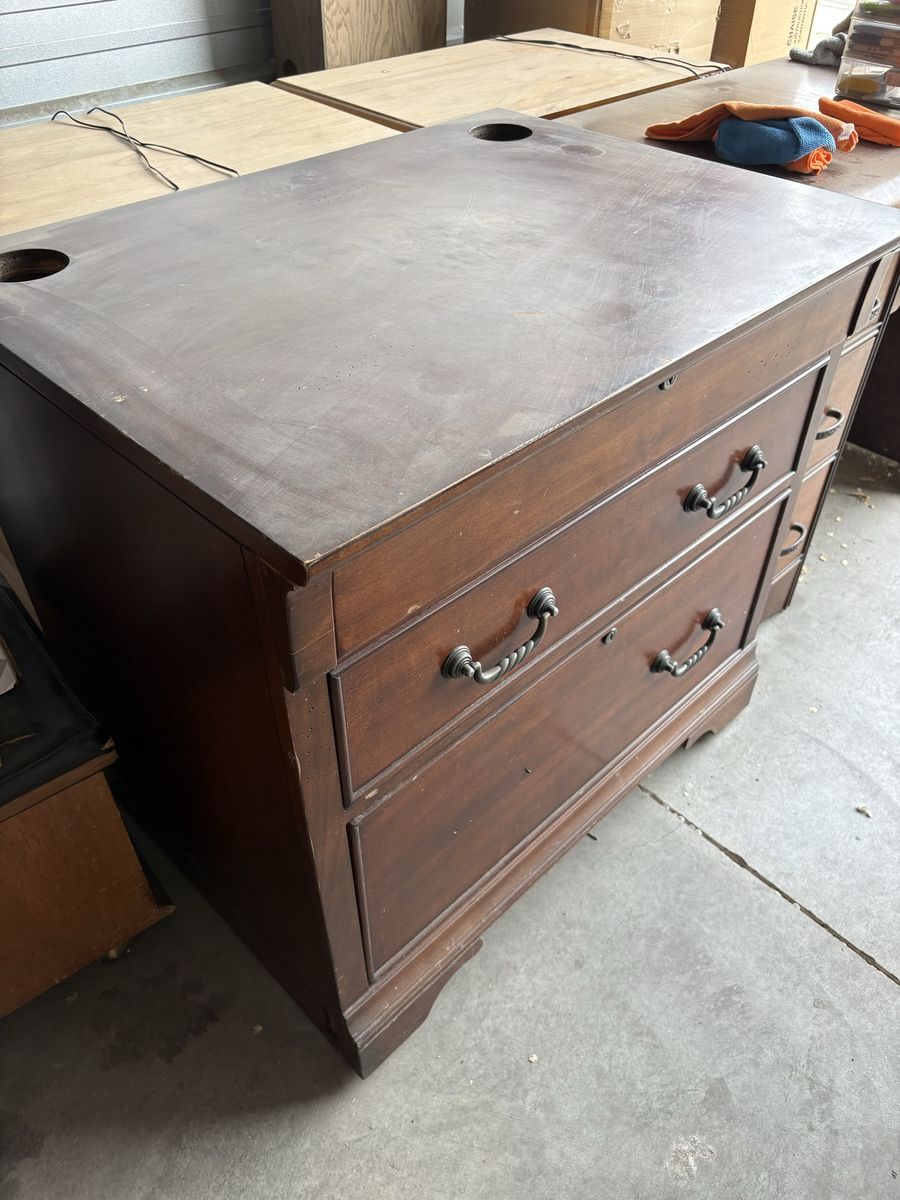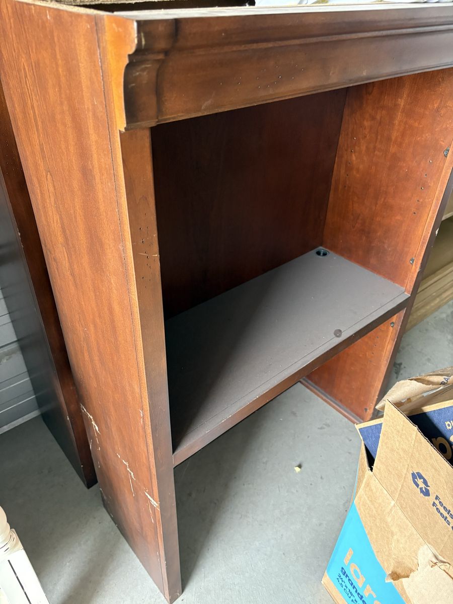 VenmoProject! This is a desk unit with 7 pieces. It creates a wall credenza with bookcases and a t-shaped peninsula desk. I started refinishing it, but it no longer fits my needs so it doesn’t warrant all the effort. 2 pieces are already primed. It requires a truck or ability to haul.
