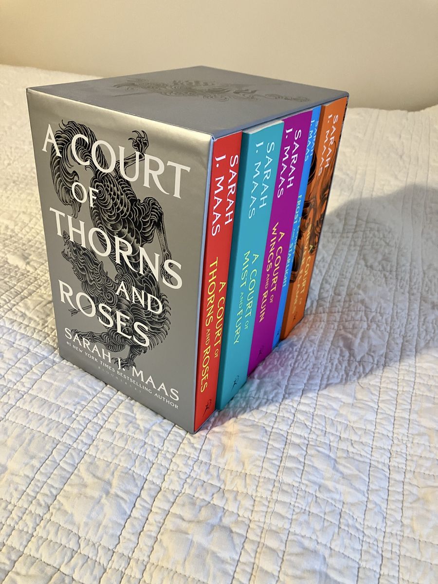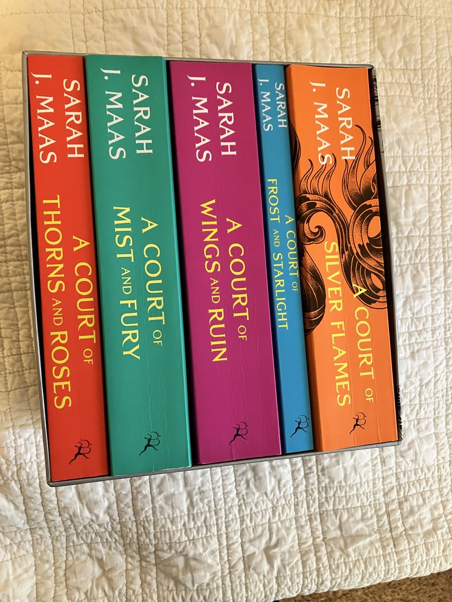 Clearing out my book shelf and selling my series of A Court of Thorns and Roses by Sarah Maas. In good condition and comes with the slipcase.