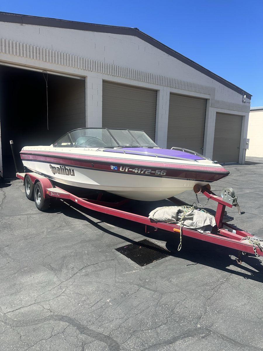 For sale 1999 Malibu Sunsetter LXi. Direct drive boat. Has big 5.7L V-8 with tons of power. Runs great. 22’ long boat with open bow seating. Interior is in good shape Didn’t use the boat all last year and it sat in storage. Tandem axle trailer with fairly new tires. Stored indoors. Needs a wax job and will look fantastic. Has Bimini cover for shade and has the center pylon for wakeboarding and also the Wedge to get a larger wake. No rips or tears. Great boat for water skiing, knee boarding, tubing and wake boarding. This boat has been in the family since 2000. Low hours. Less than 300. Has snap on travel covers and also a large storage cover for outdoor storage.