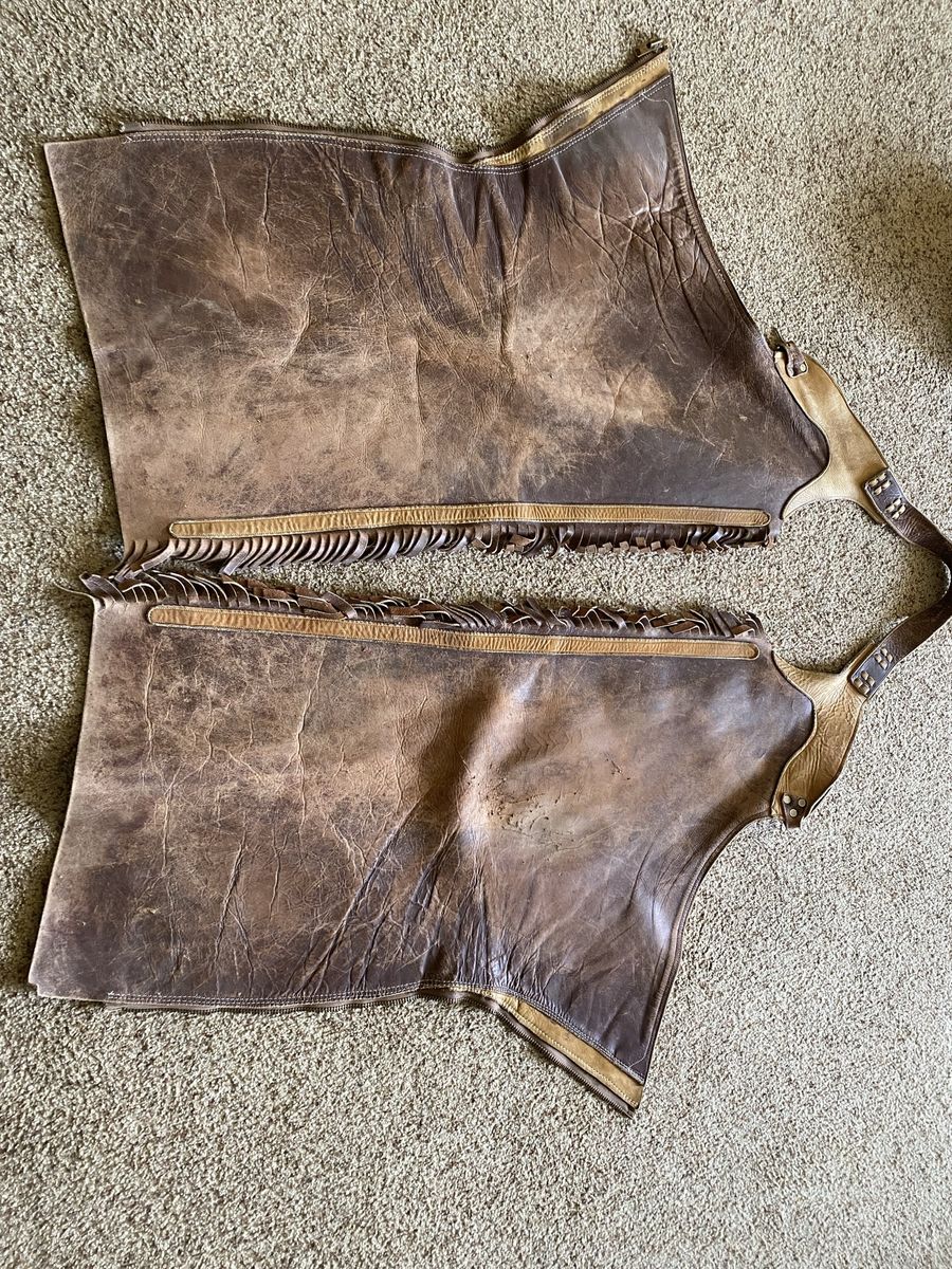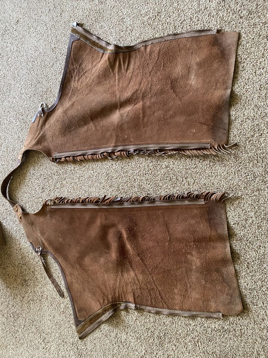 I have a pair of stove pipe chaps for sale. They are a size for a youth. They zip up on the legs. The girl in the picture is 5’4” tall about 110 lbs. Maybe a little too big for her. These are genuine leather.