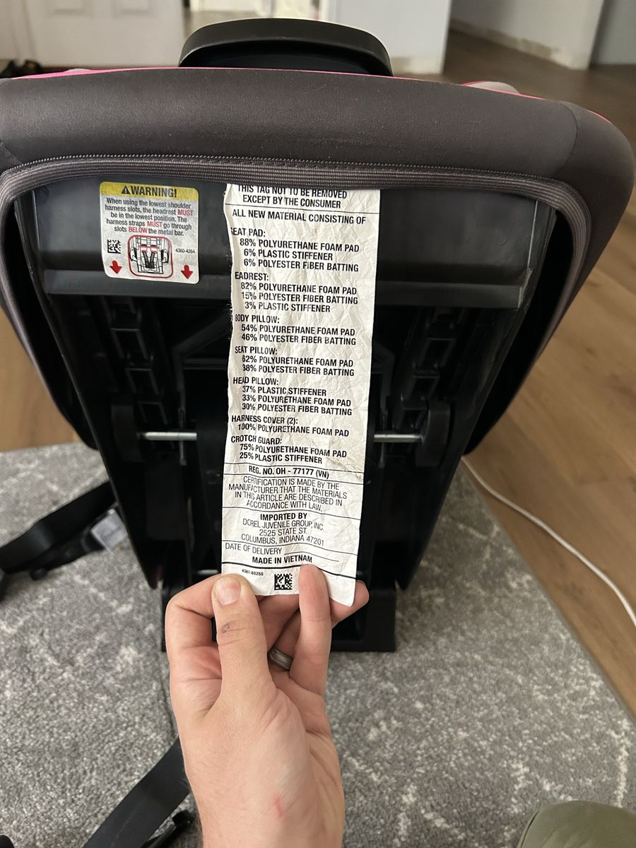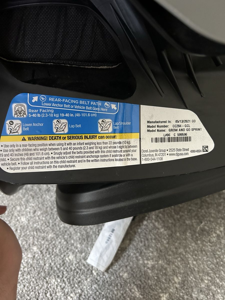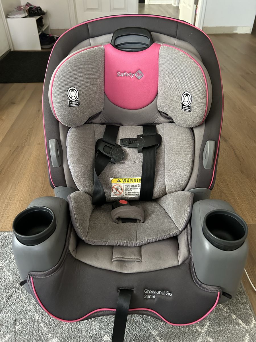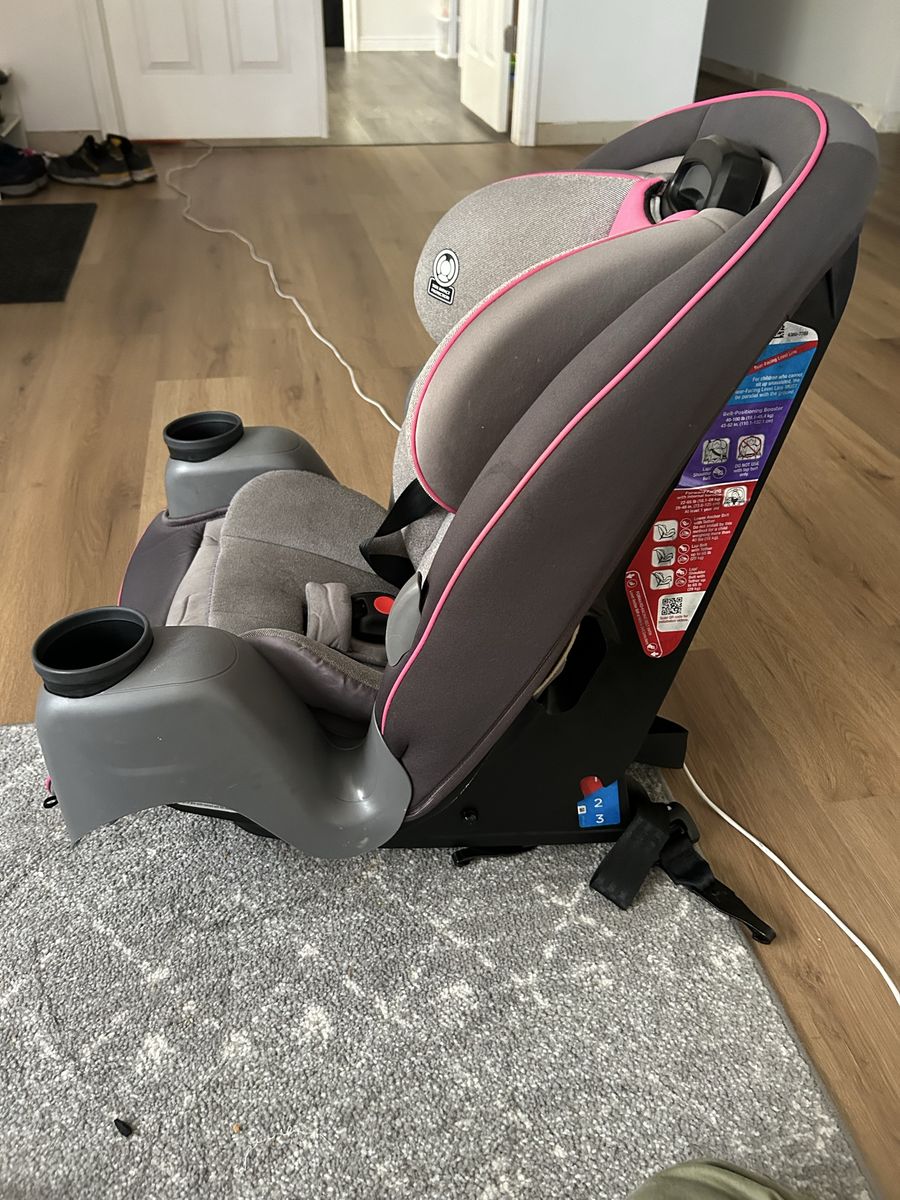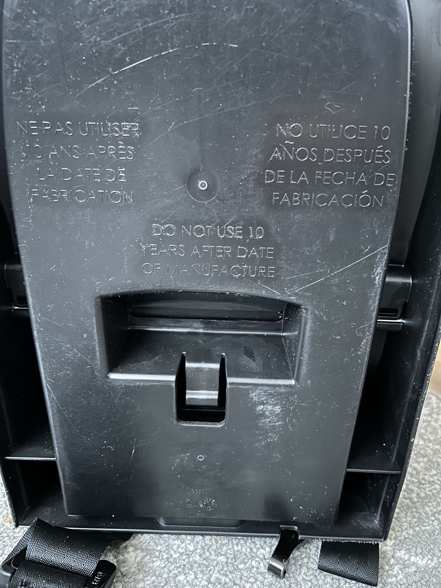 VenmoCar seat, black, pink, gray. Missing shoulder strap pads. Manufacture date 05/13/2021, expiration date 05/13/2031. 40-100 lbs.