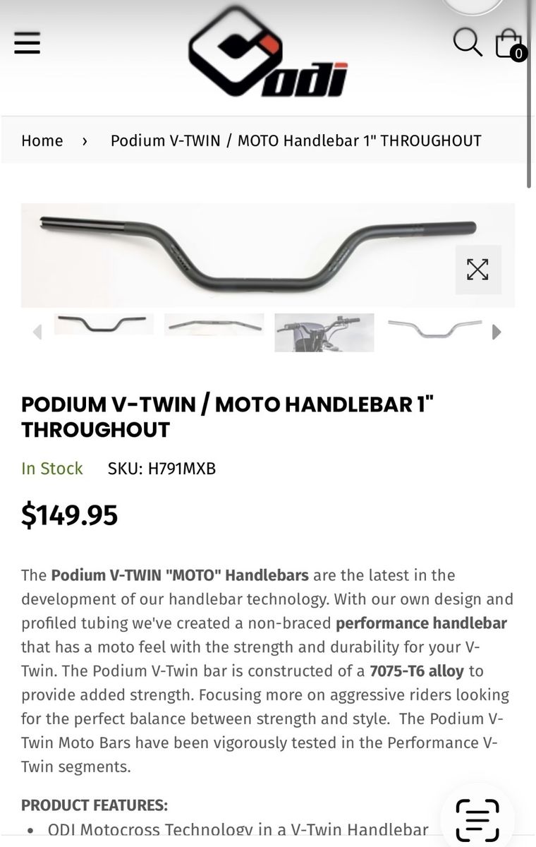 ODI Podium handlebars for Harley Davidson T bar set up. 1” thick should be compatible with many bikes including street glides and road glides up to 2023. Mounted briefly but in excellent shape. $150 new! Call or text (801) 633-2657