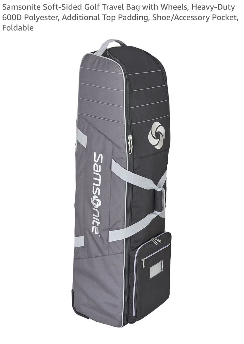 ZelleSamsonite Soft-Sided Golf Travel Bag with Wheels, Heavy-Duty 600D Polyester, Additional Top Padding, Shoe/Accessory Pocket, Foldable