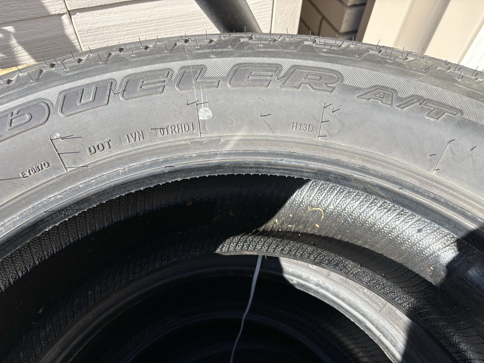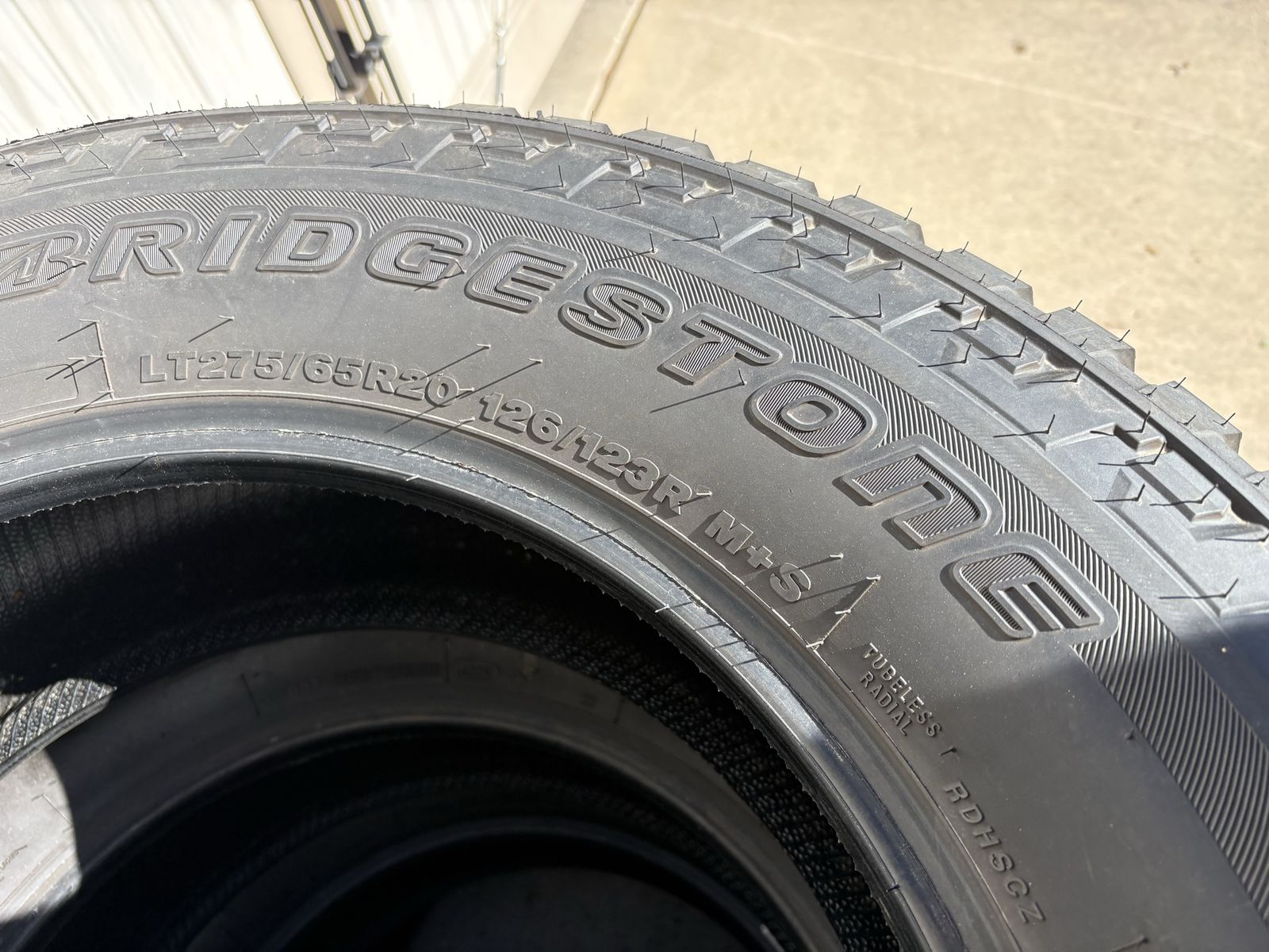 ApplePay275/65/20 Bridgestone dealer all-terrain tires in like new condition. These were taken off my 2026 Ford F350 super duty with 200 miles on it. A full set of.4 Tires NO wheels. In perfect condition, you can save some money. These would cost you $1500 for a set new. Selling the set of four tires for $750 Call or text Rob at 801-358-3620