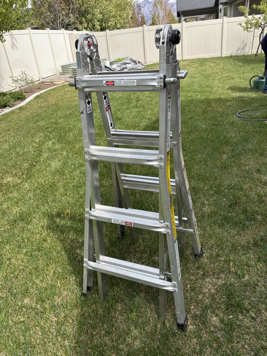 VenmoGorilla ladder. (Similar to a Little Giant Ladder) Has 20 positions and is super strong. Like new--has been used very little. It extends to 14' 10" of worikable height and has a 300 lb. capacity.