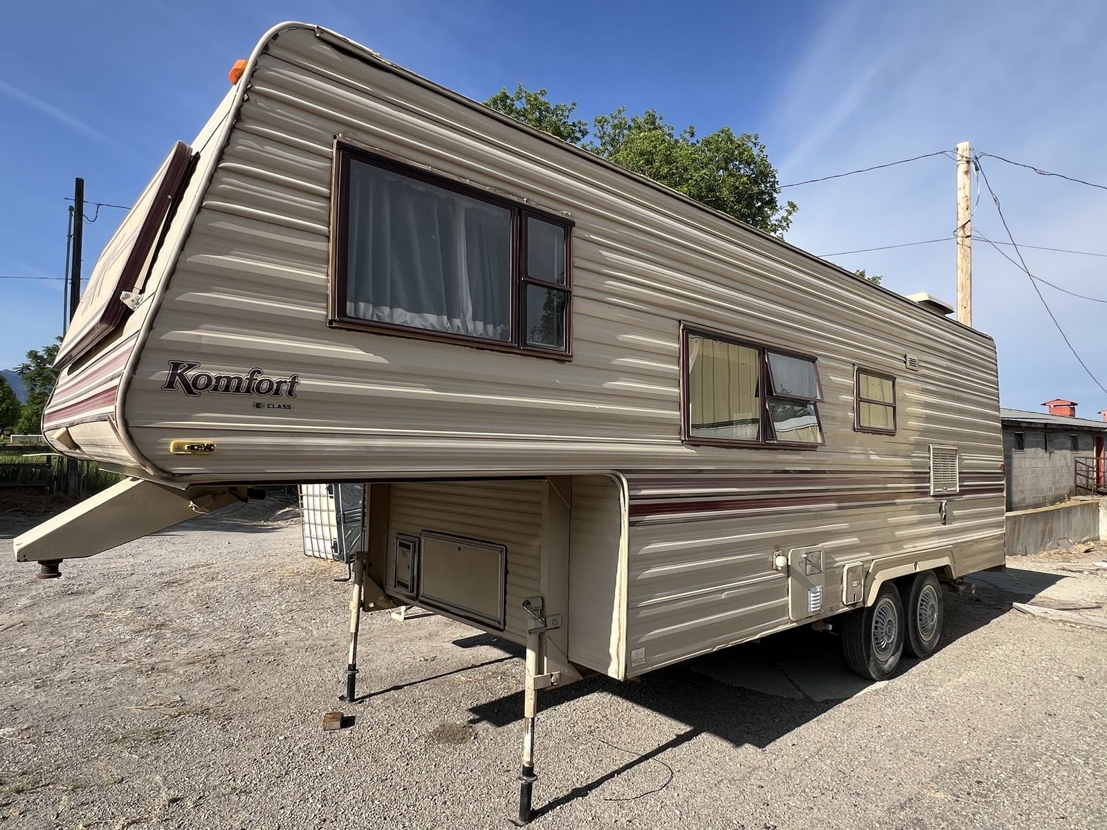 5th Wheel Komfort camp trailer. 23 ft Has always been maintained. Has always been parked inside during the winter months. If you’re looking for a great way to adventure into the mountains, this will get you there! Hitch is included in the price. Weight 5000-5500