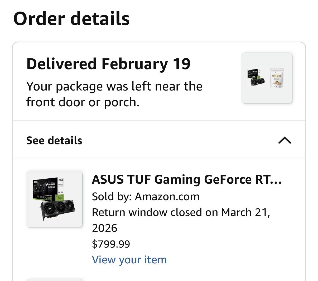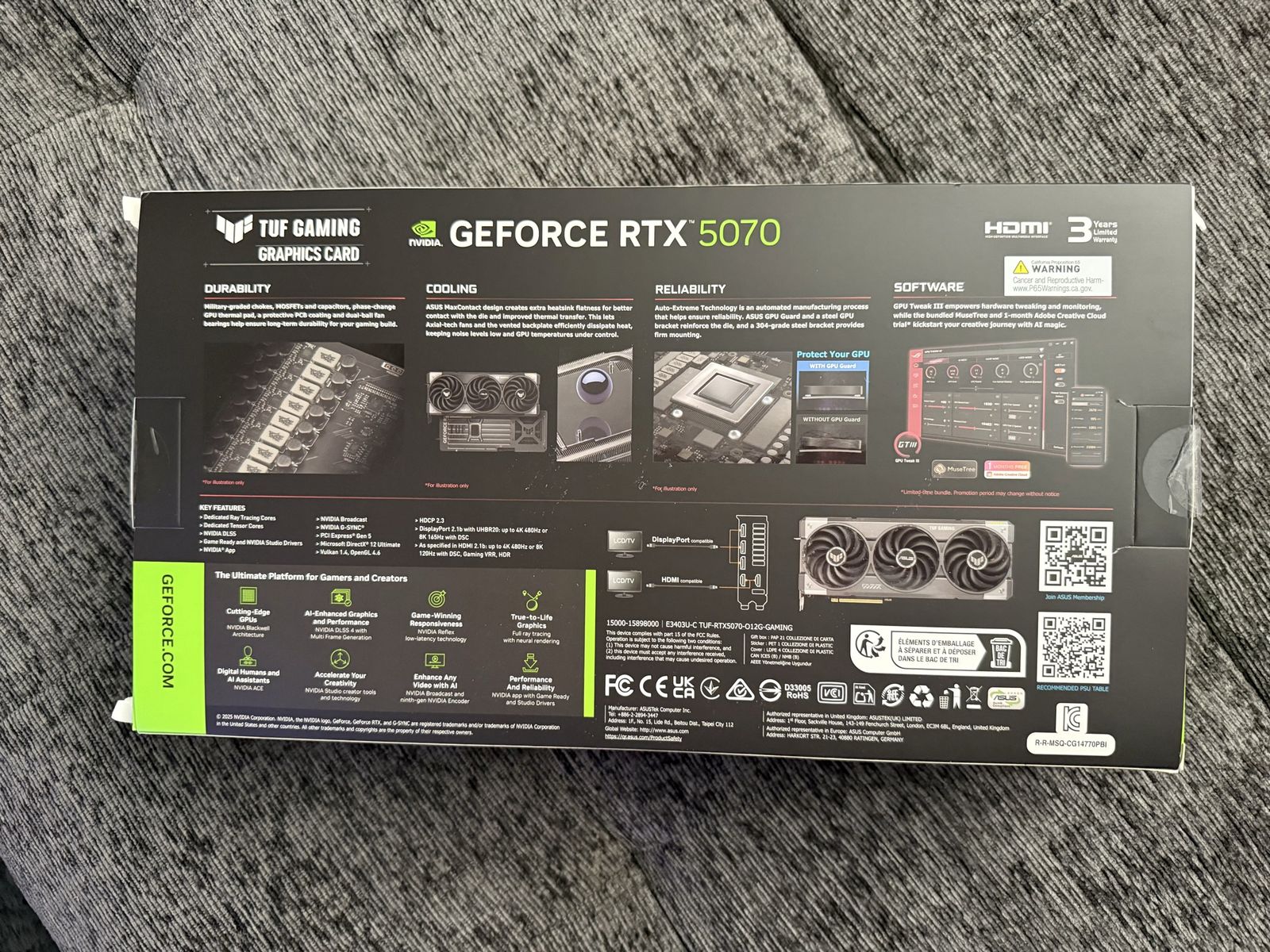Selling my ASUS TUF RTX 5070 in excellent condition. I purchased it on February 19, and it has been lightly used in a clean, well-ventilated setup.