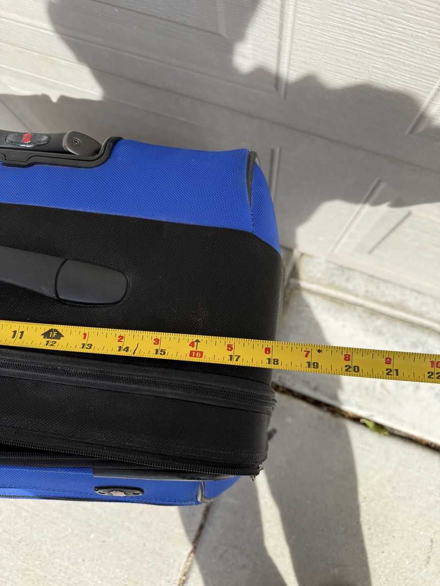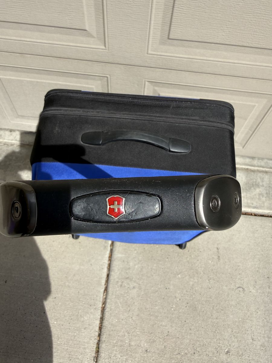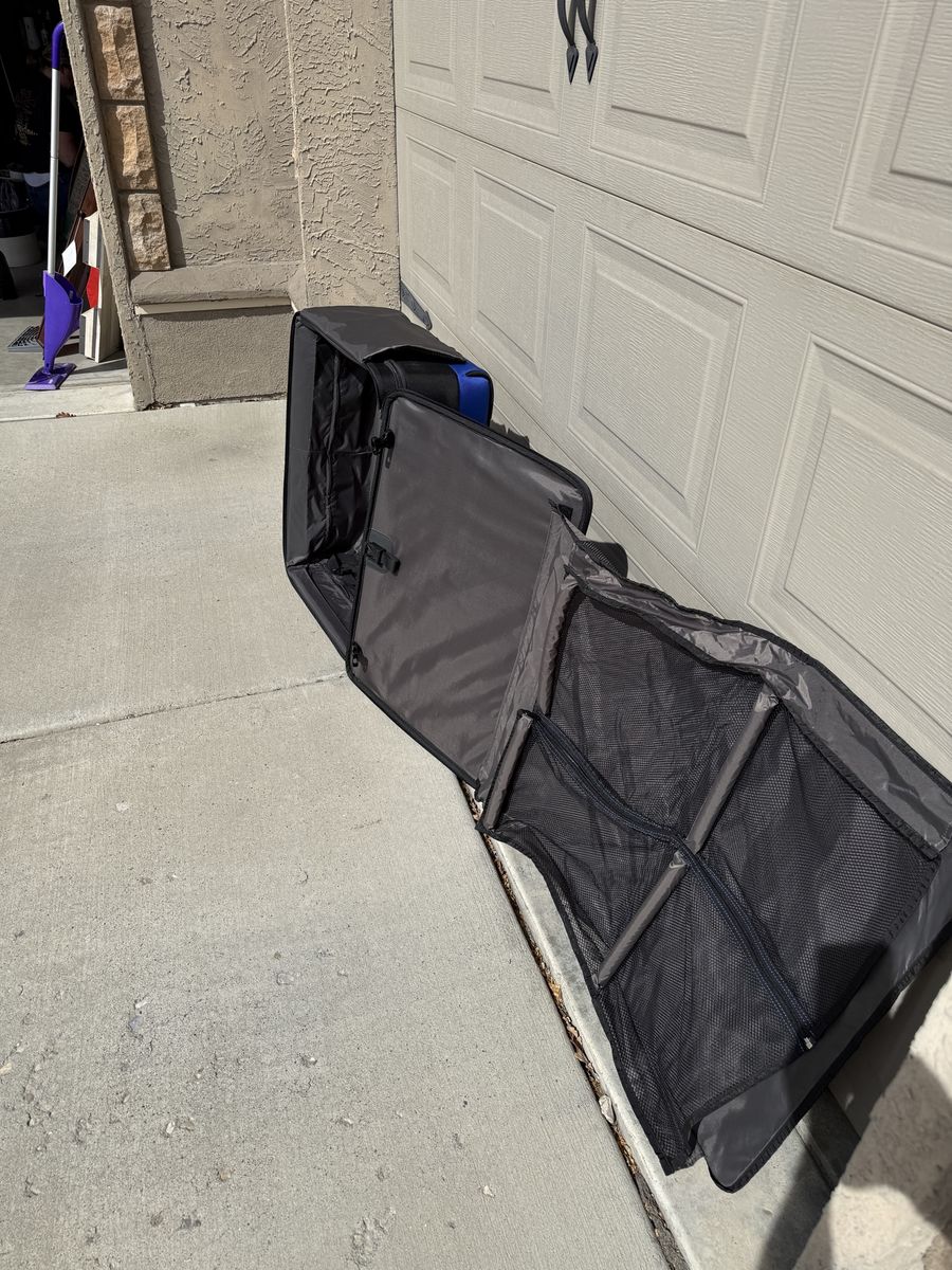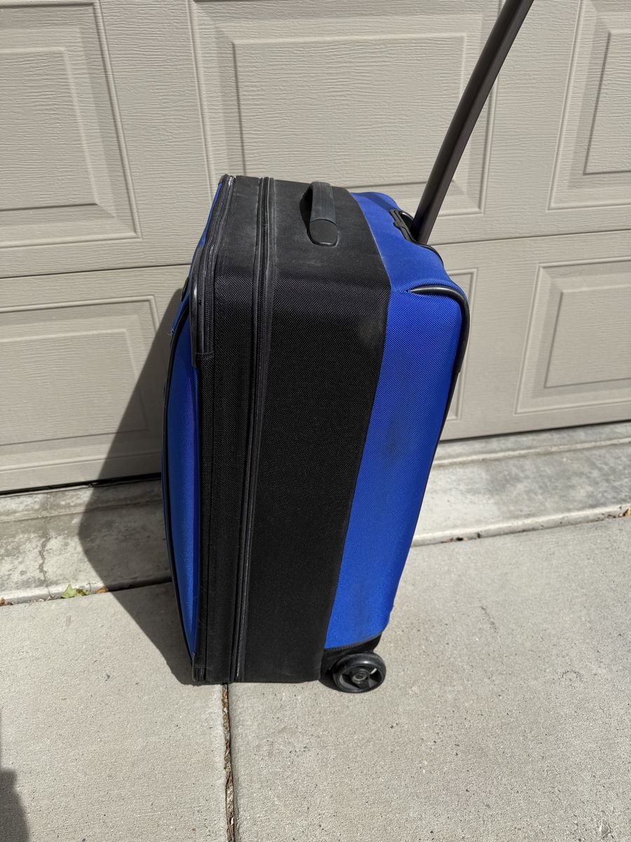 Clean inside and out with no major damage. Zippers work smoothly, wheels roll well, and the handle extends and locks properly. Lightweight but durable — great for weekend trips, flights, or extra storage.