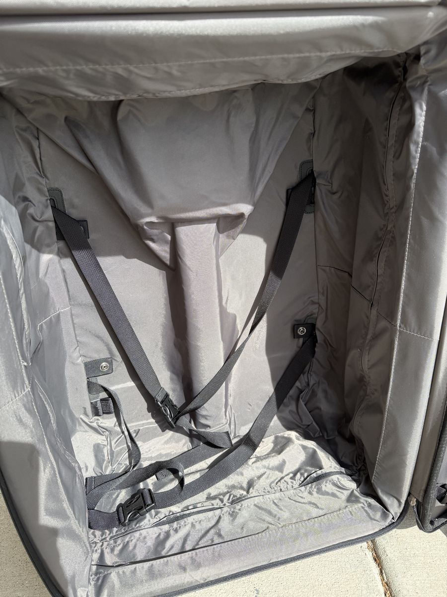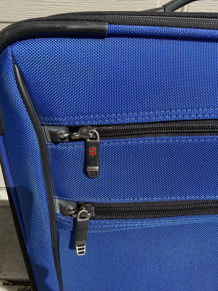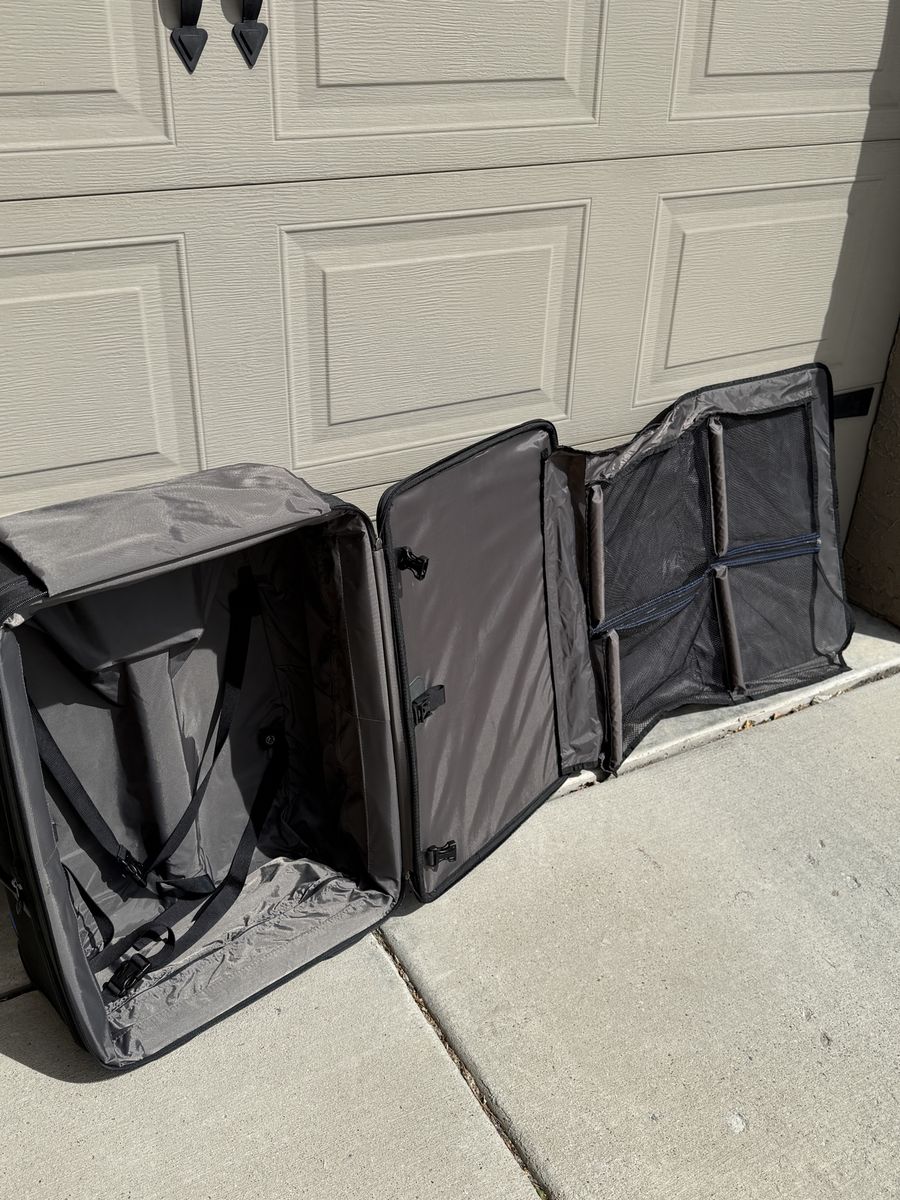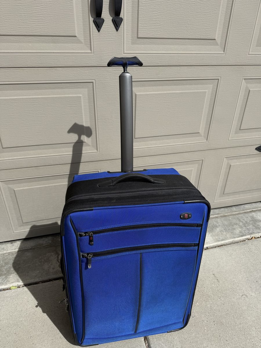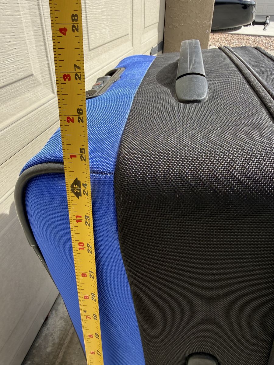 Clean inside and out with no major damage. Zippers work smoothly, wheels roll well, and the handle extends and locks properly. Lightweight but durable — great for weekend trips, flights, or extra storage.
