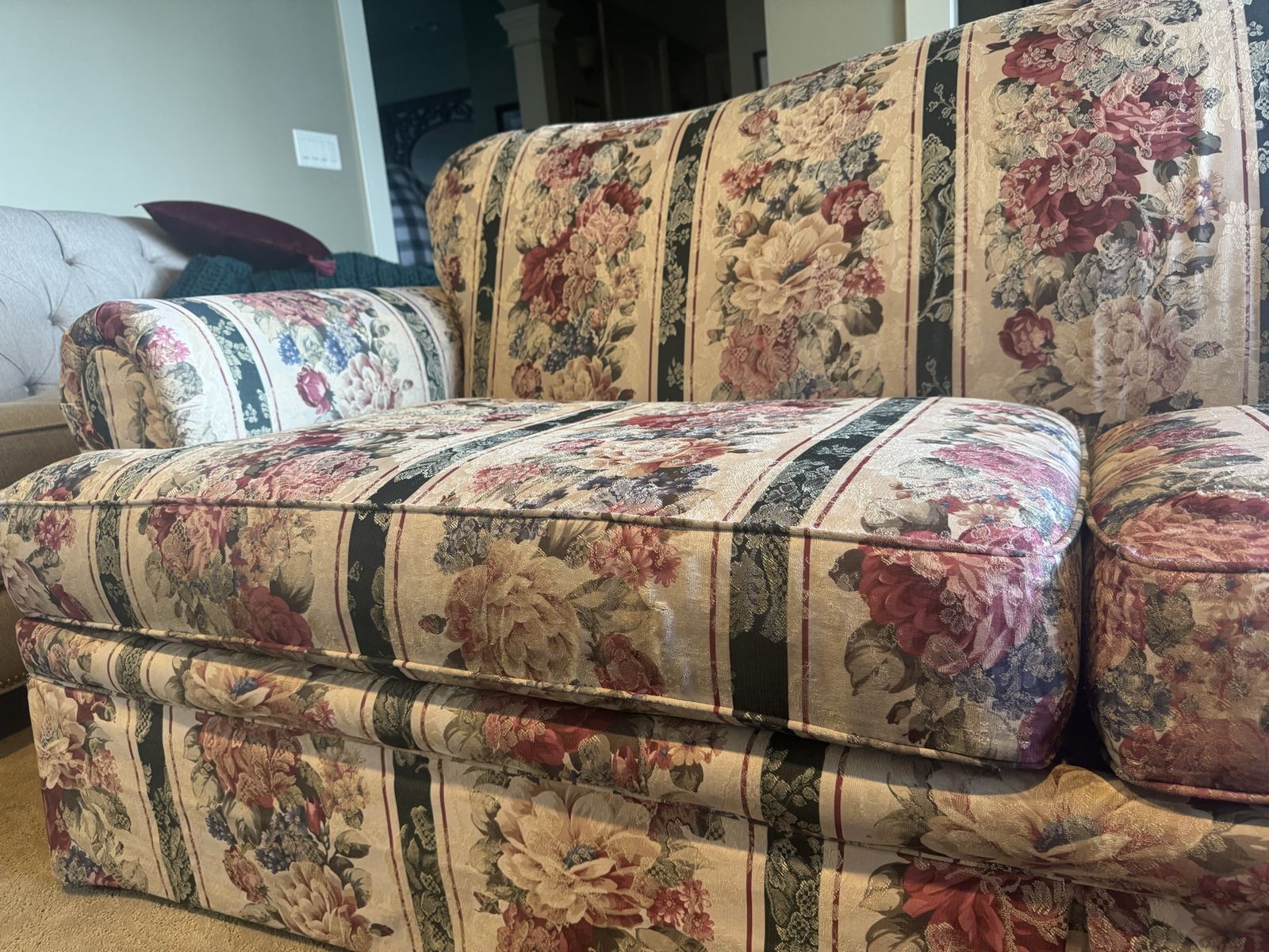 Selling for grandparents Sofa is a Cochrane sofa which is known for high quality wooden frames and quality materials -great quality sofa to reupholster to update -fabric a little worn but still good condition -cushions are still in great shape -90’ long Really comfy couch 175 obo