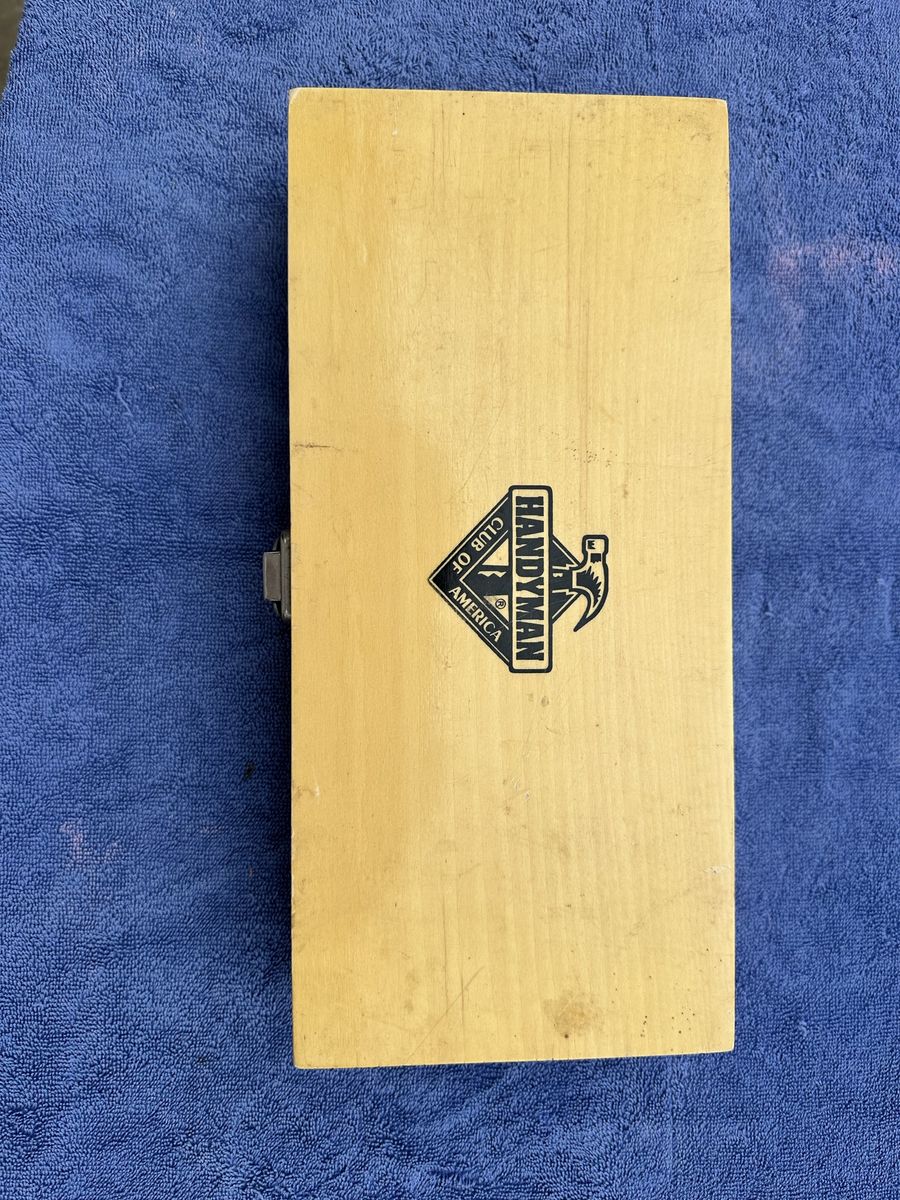 Zelle1/4”, 3/8”, 1/2”, 5/8”, 3/4”, 7/8”, 1”, 1 1/8”, 1 1/4”, 1 3/8”, 1 1/2”, 1 5/8”, 1 3/4”, 1 7/8”, 2”, 2 1/8”. Brass bits from “Handyman Club of America” They would send out tools at discount prices to be tested by consumers. Each bit has a protective plastic cover. My dad thought these were dry good bits.