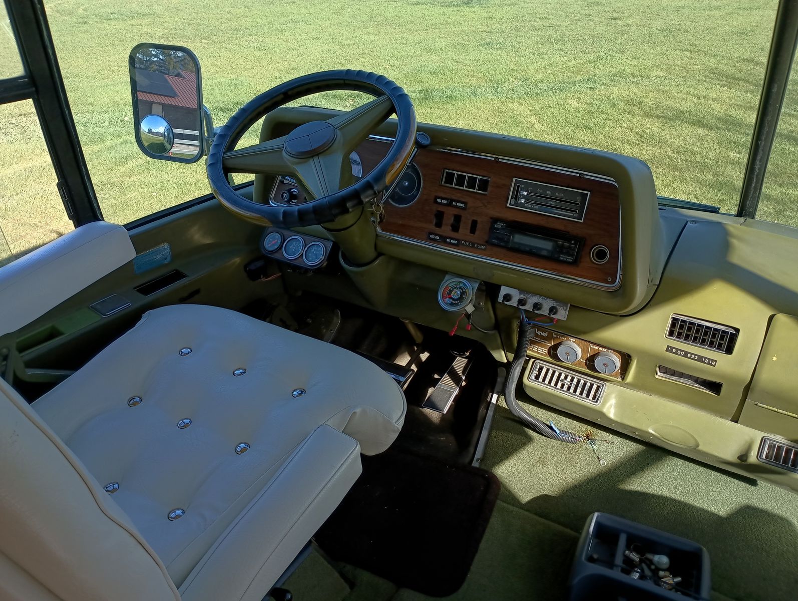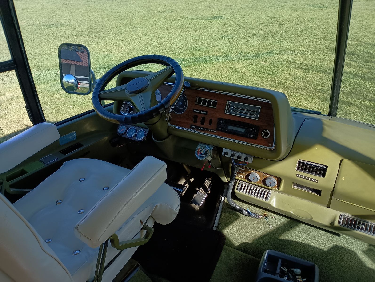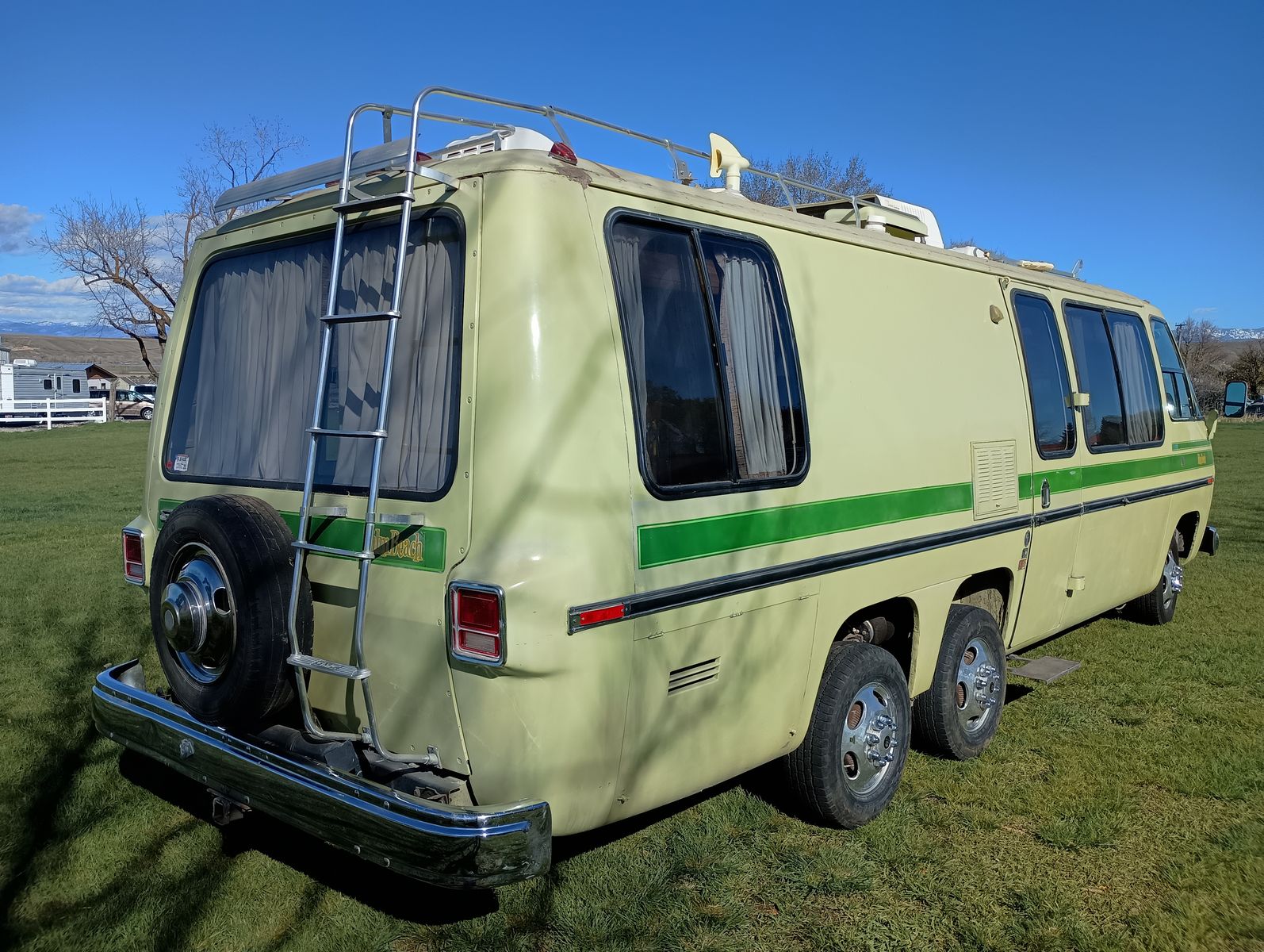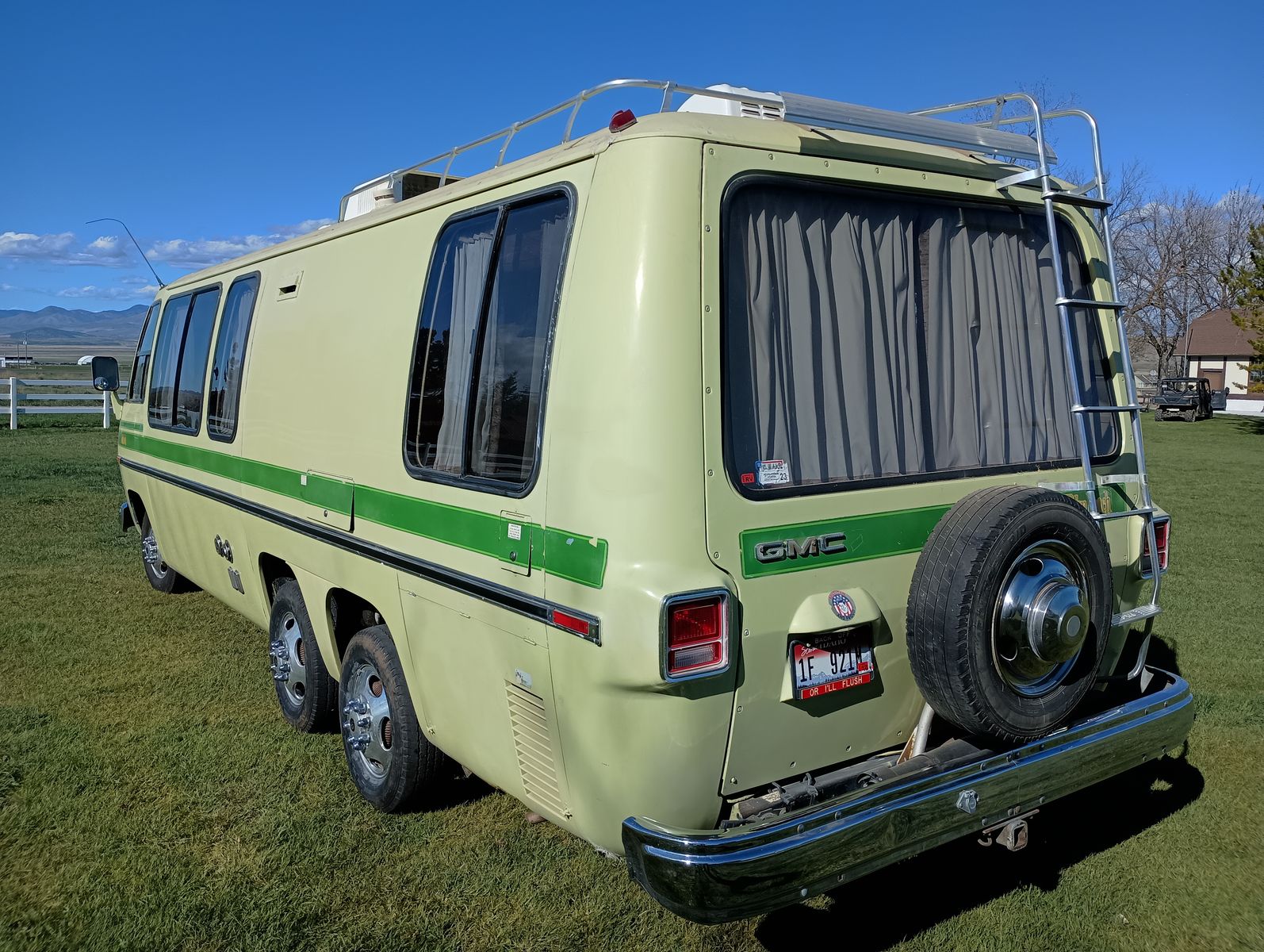 1976 GMC Palm Beach Motorhome for sale. True collector. Starts well, runs well and drives well. Brakes are good. Has an air bag ride system. Has a dinette that converts into a bed and two sofas in the rear that convert into one bed. Some modifications have been made to better move air through the radiator. Has Michelin tires with aluminum rims. It gets used every year for several trips. These motorhomes have an Oldsmobile 455 front-wheel drive power train. Has been stored in a shop when not in use for 25 years. No leaks. Also has a working Onan generator. All of the plumbing works.