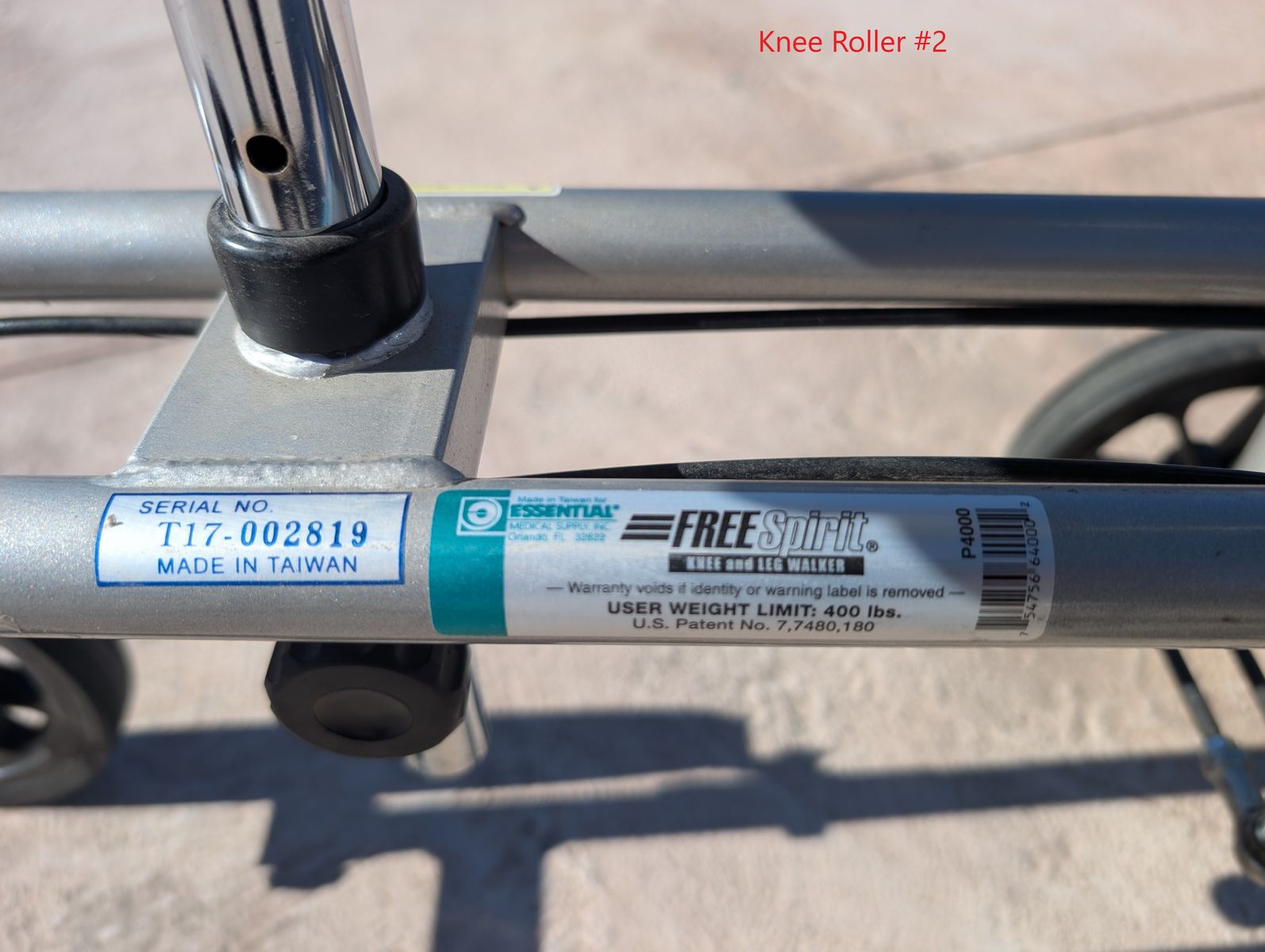 GooglePayFree Spirit knee and leg walker. Is well built and has loop-style brake handles on each side of the handle bar for dual independent brakes, and a thick supportive knee pad.