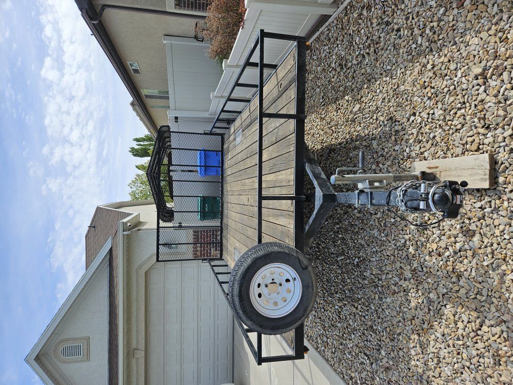 Deck over single axle trailer utility trailer. 8x14, the tires are less than a year old. It will fit 4 ATVs and a dirt bike or a 4 seater UTV and a dirt bike. It had been a great trailer and I'm only selling it due to needing a longer one.