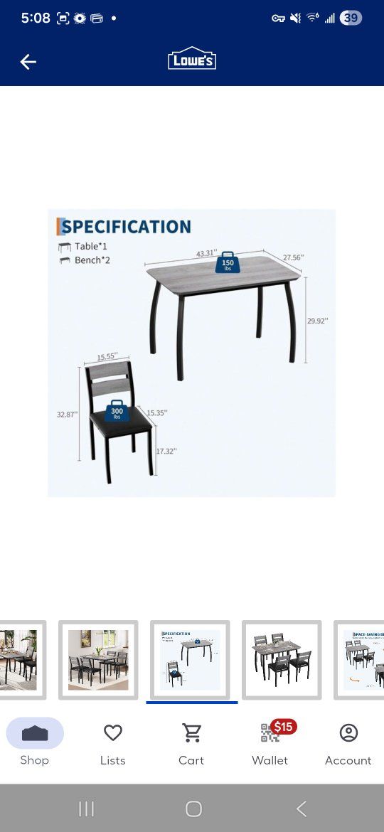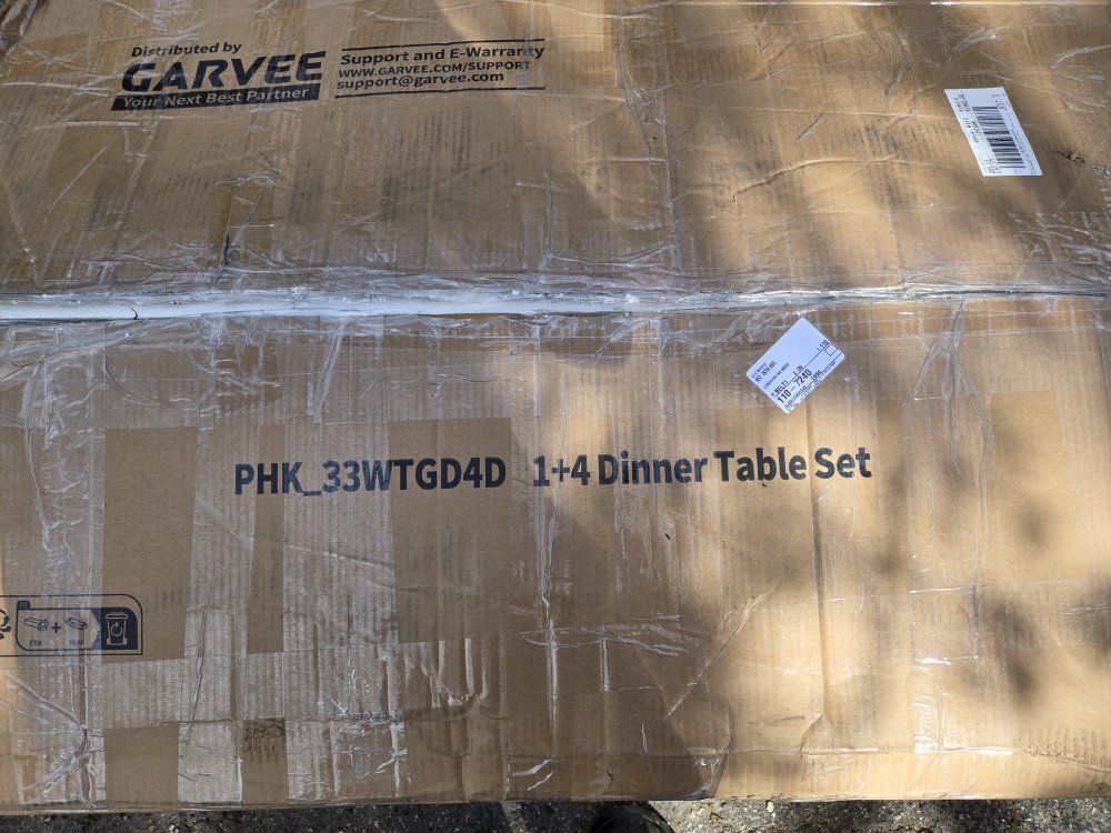 new in the box its a full dinner table set i think lowes sells these for around $150