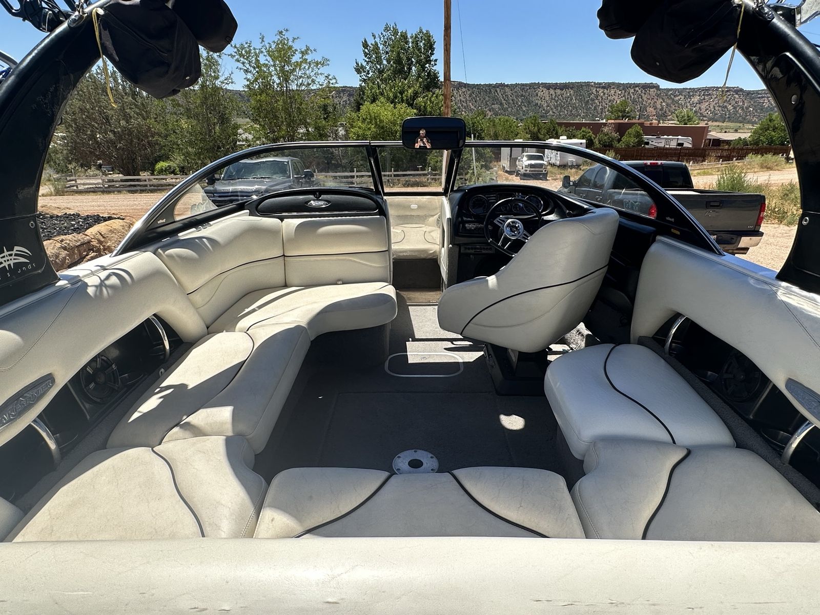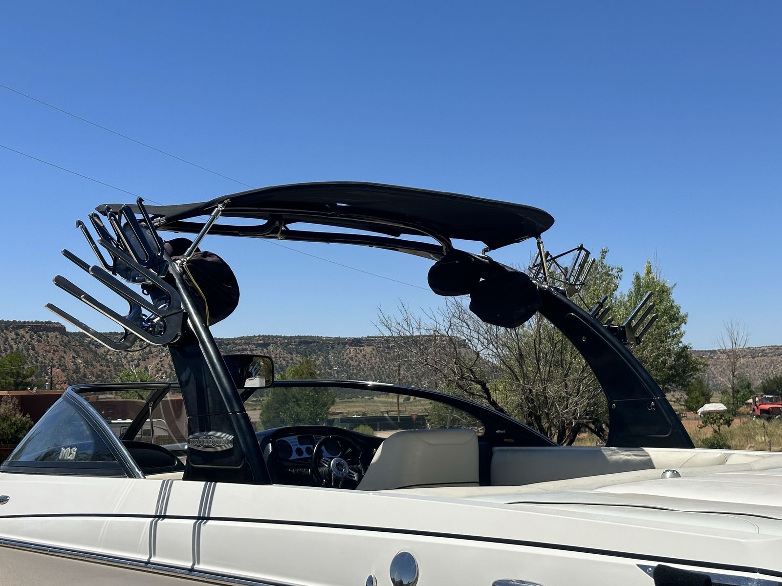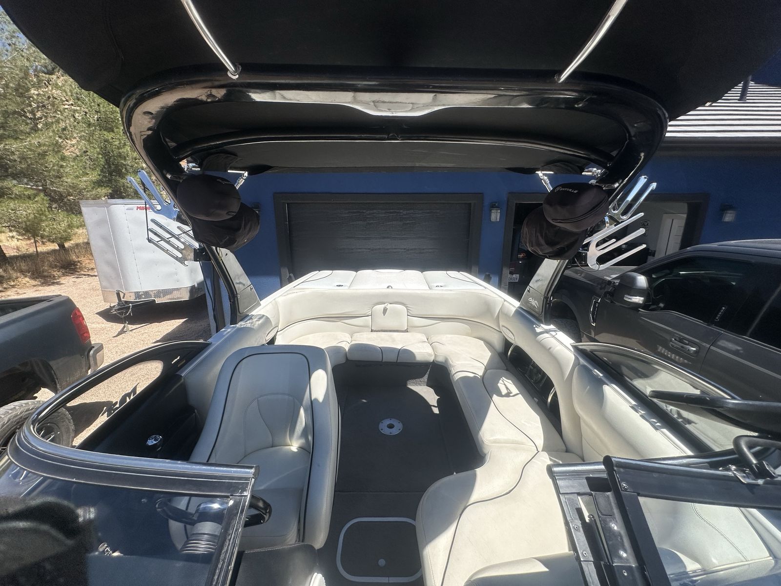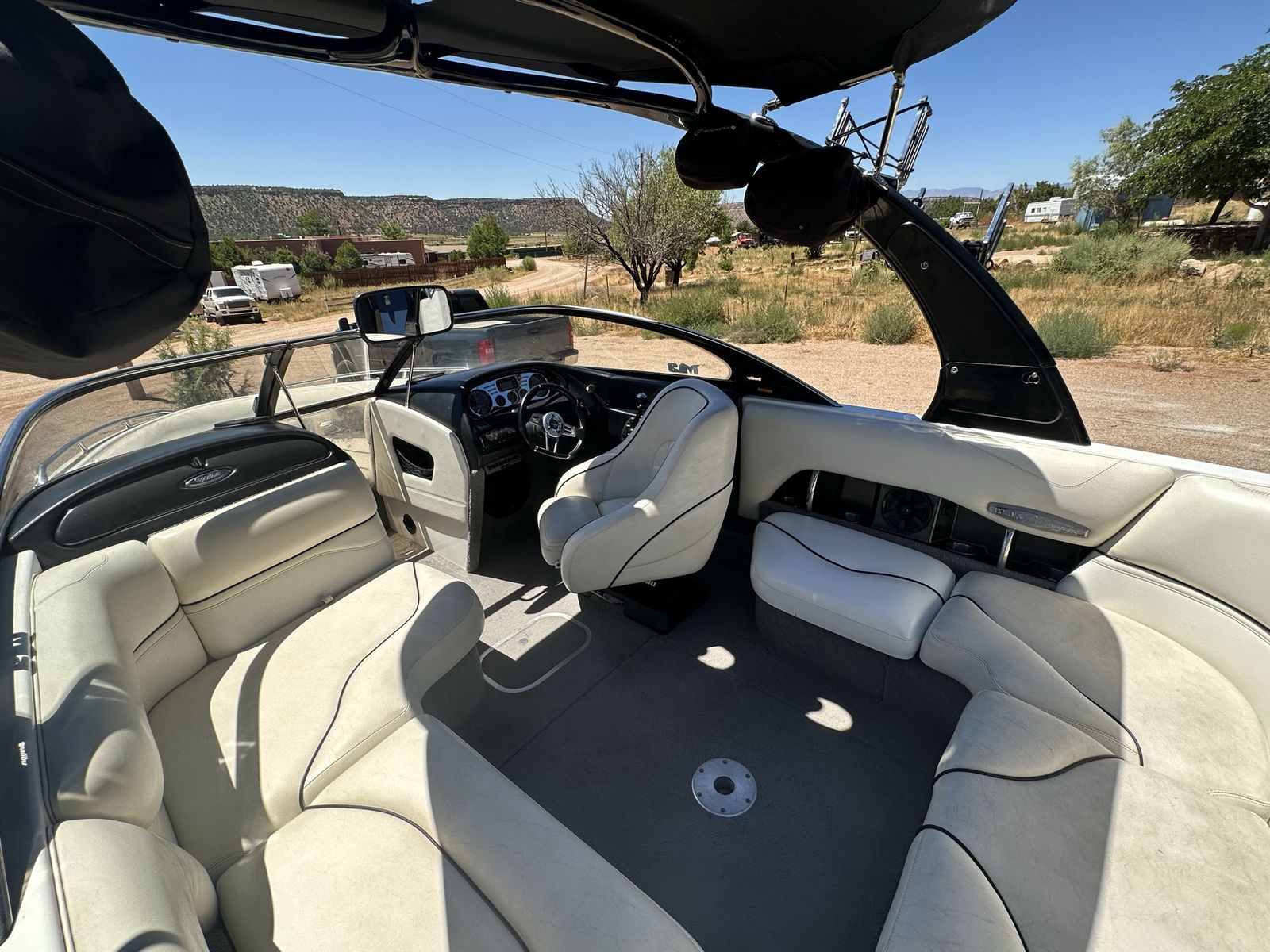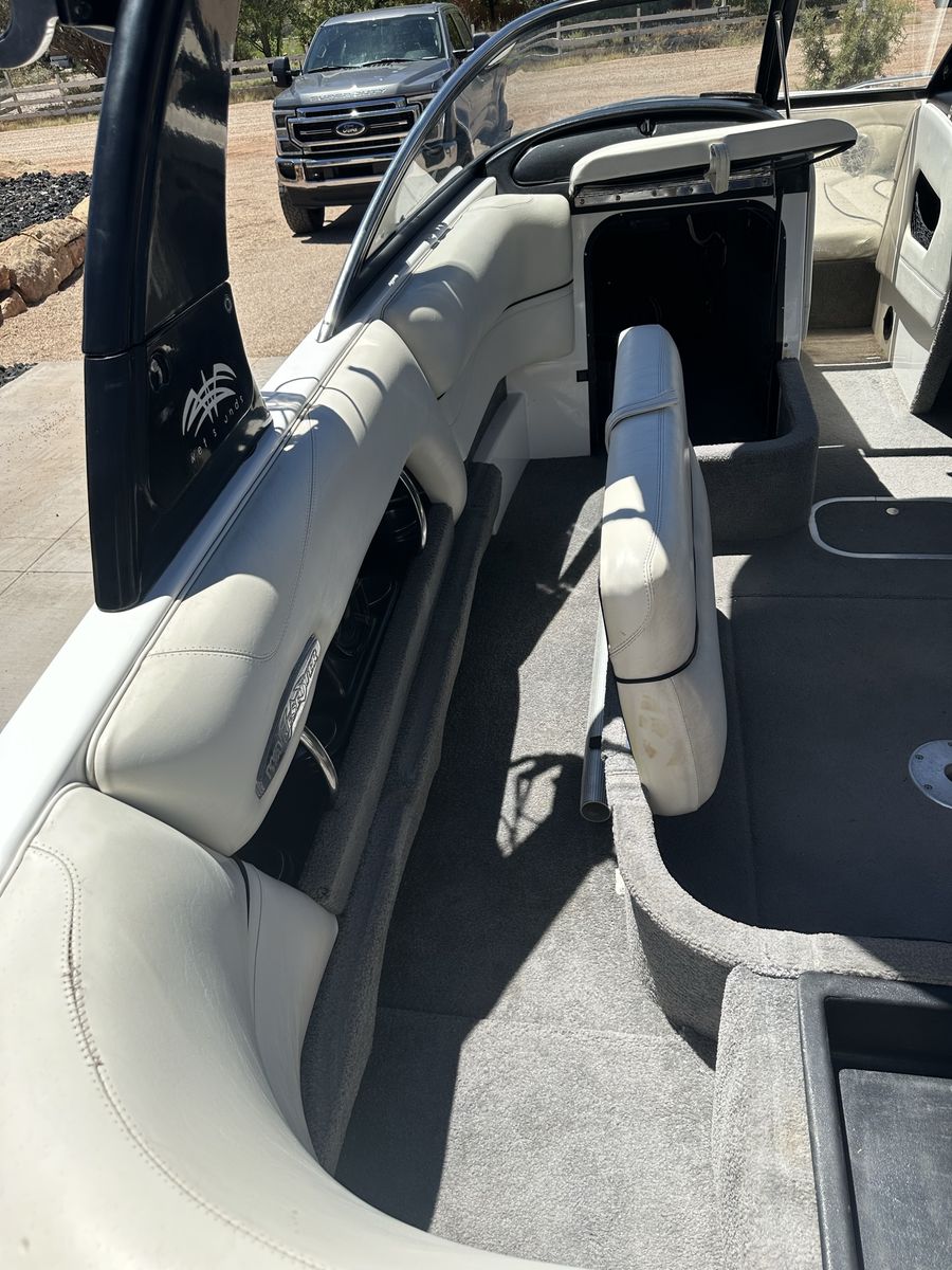 Indmar monsoon 340 engine with 907 hours Power wedge Bimini Boat cover Internal ballast tanks 1250 lbs. Perfect Pass cruise control Extreme tandem axle trailer with surge brakes and LED lights Fiberglass swim step 4 board racks 2 sets of tower speakers ($3500 stereo system) Built in heater Let me know if you have any questions.