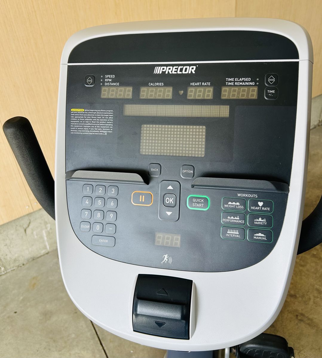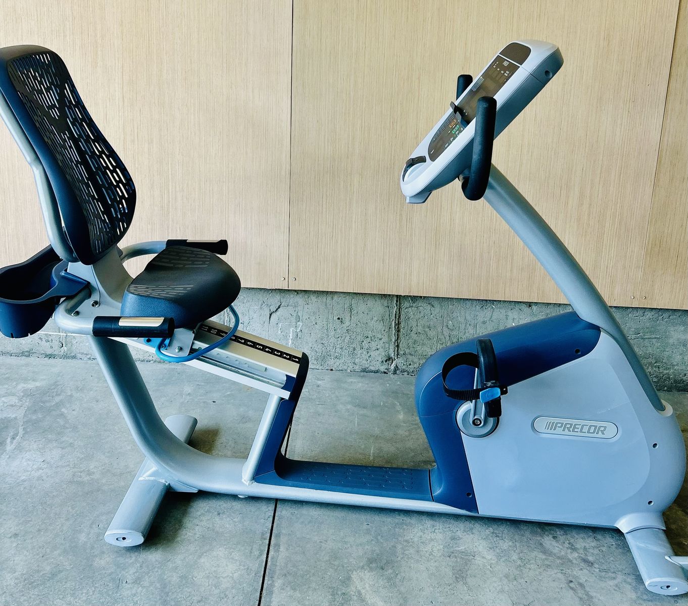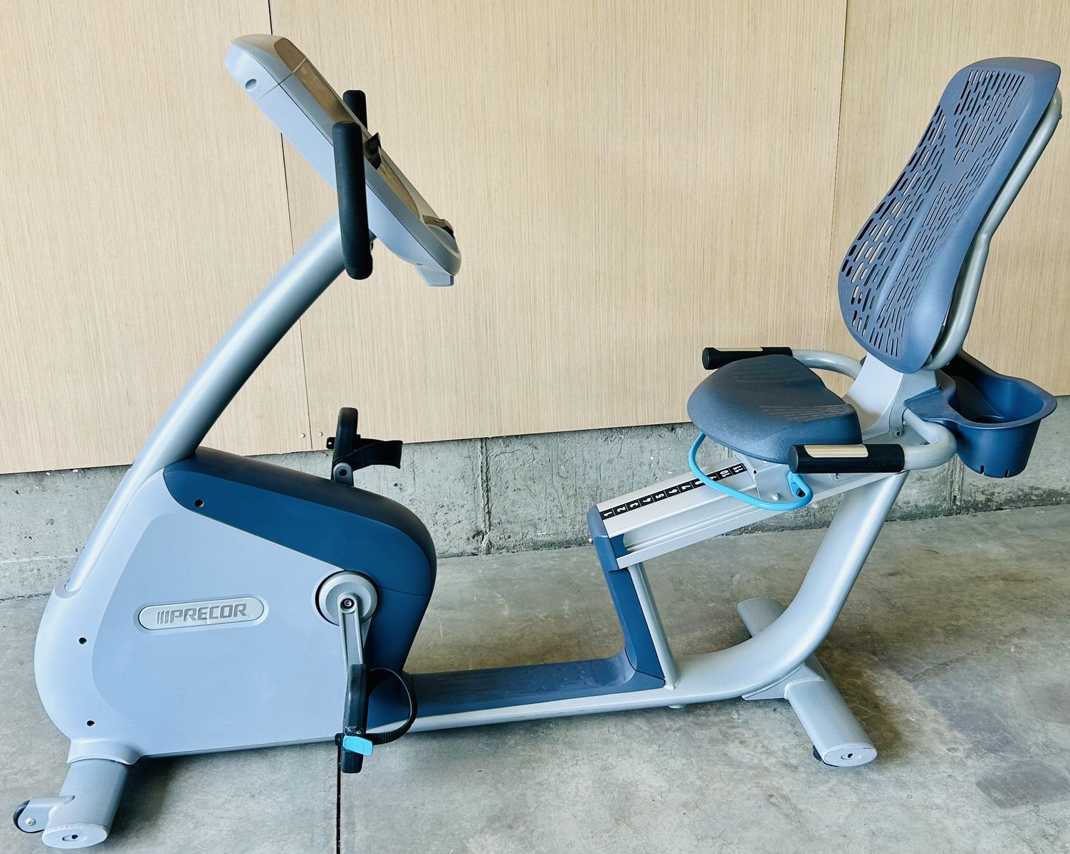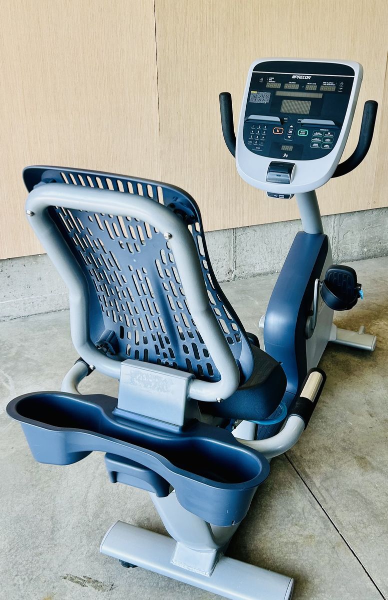 Commercial-grade Precor 800 series recumbent bike (RBK line), the same high-end model found in gyms and rehab facilities. Designed for comfort and low-impact training, it features a step-through frame, supportive Air Flex seat, and smooth, quiet resistance.
