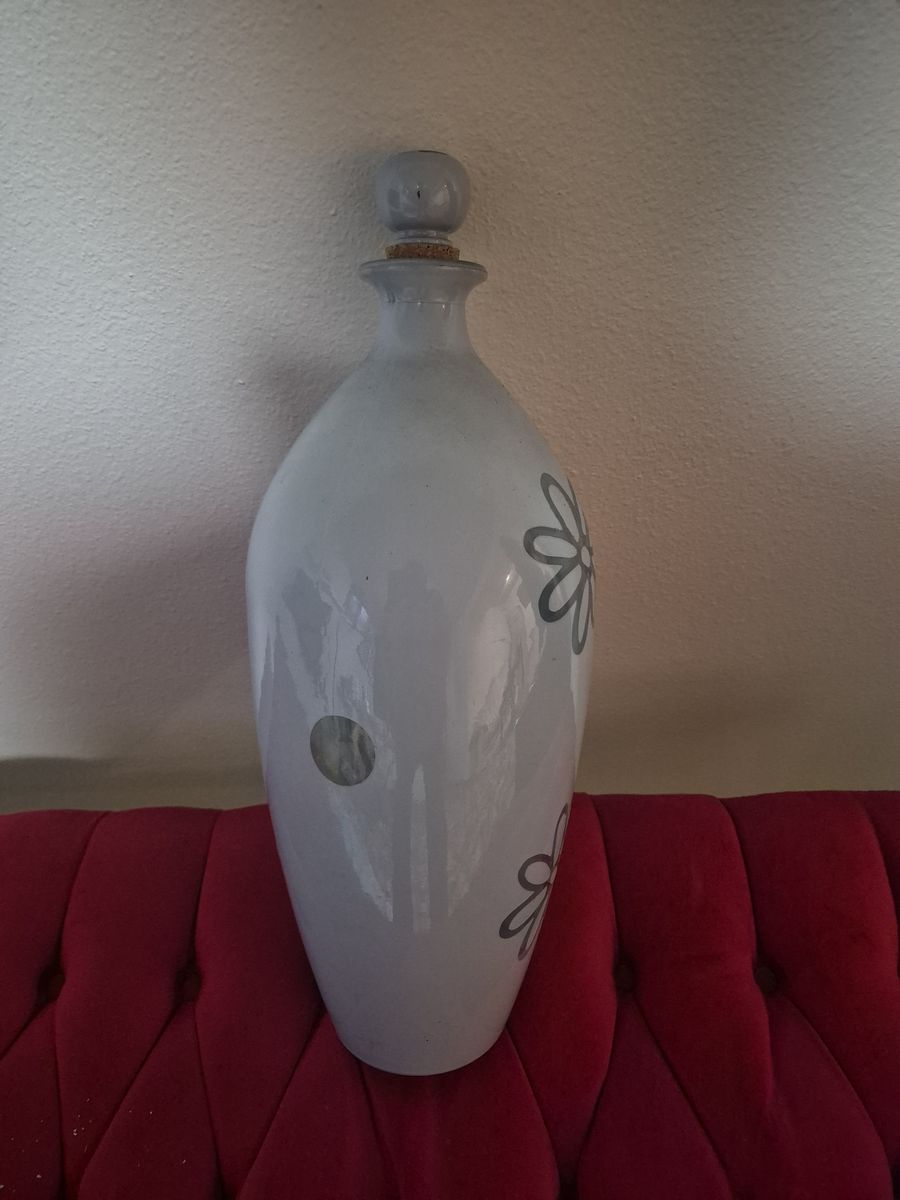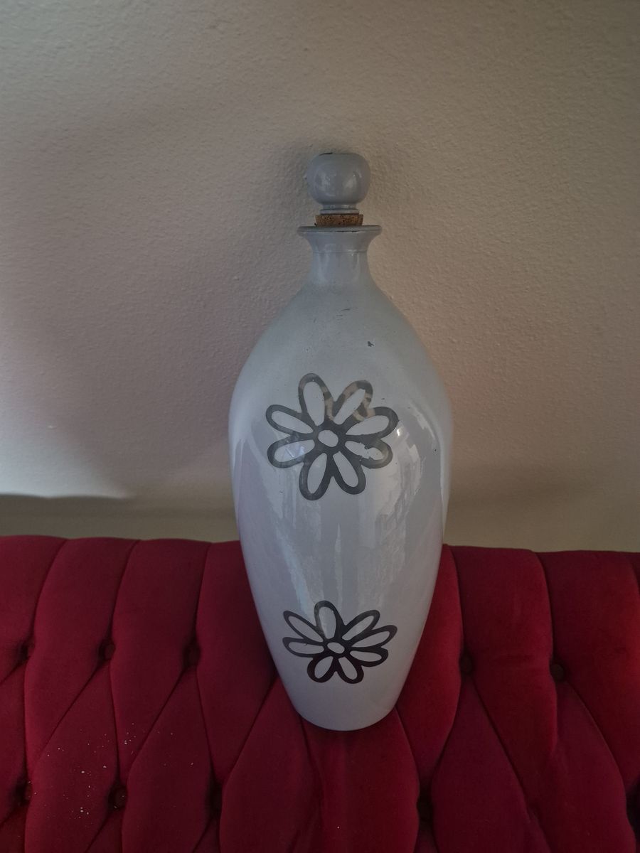 VenmoWhite ceramic vase featuring a stylized, dark-outlined floral daisy design. This specific aesthetic—a semi-glossy white glaze with minimalist, hand-painted or carved floral motifs—is common in modern and vintage-inspired home decor.