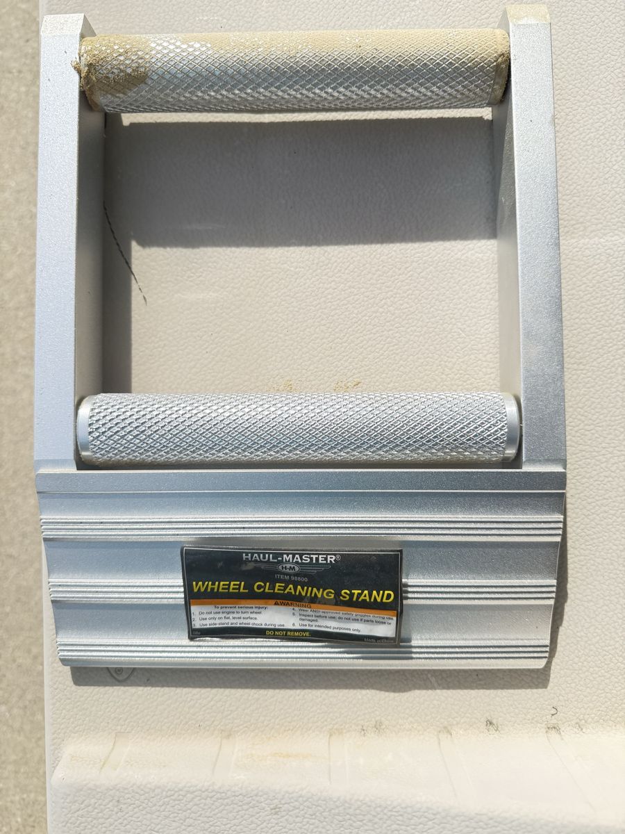 Wheel cleaner. Made by haul master. Helps when cleaning motorcycles. Allows you to put under wheels and rotate them very handy