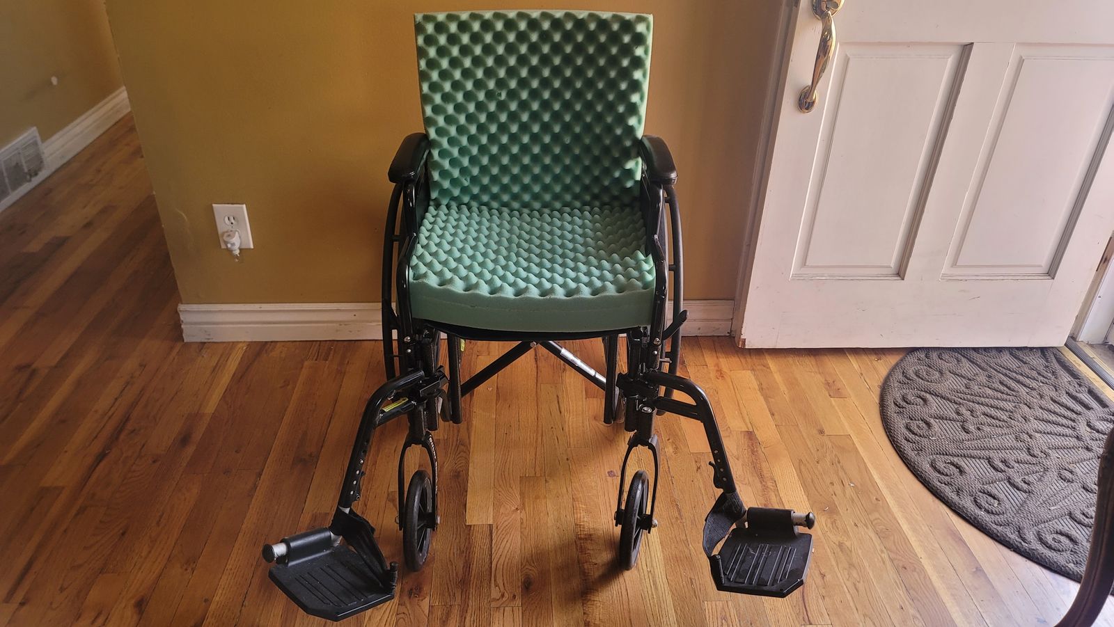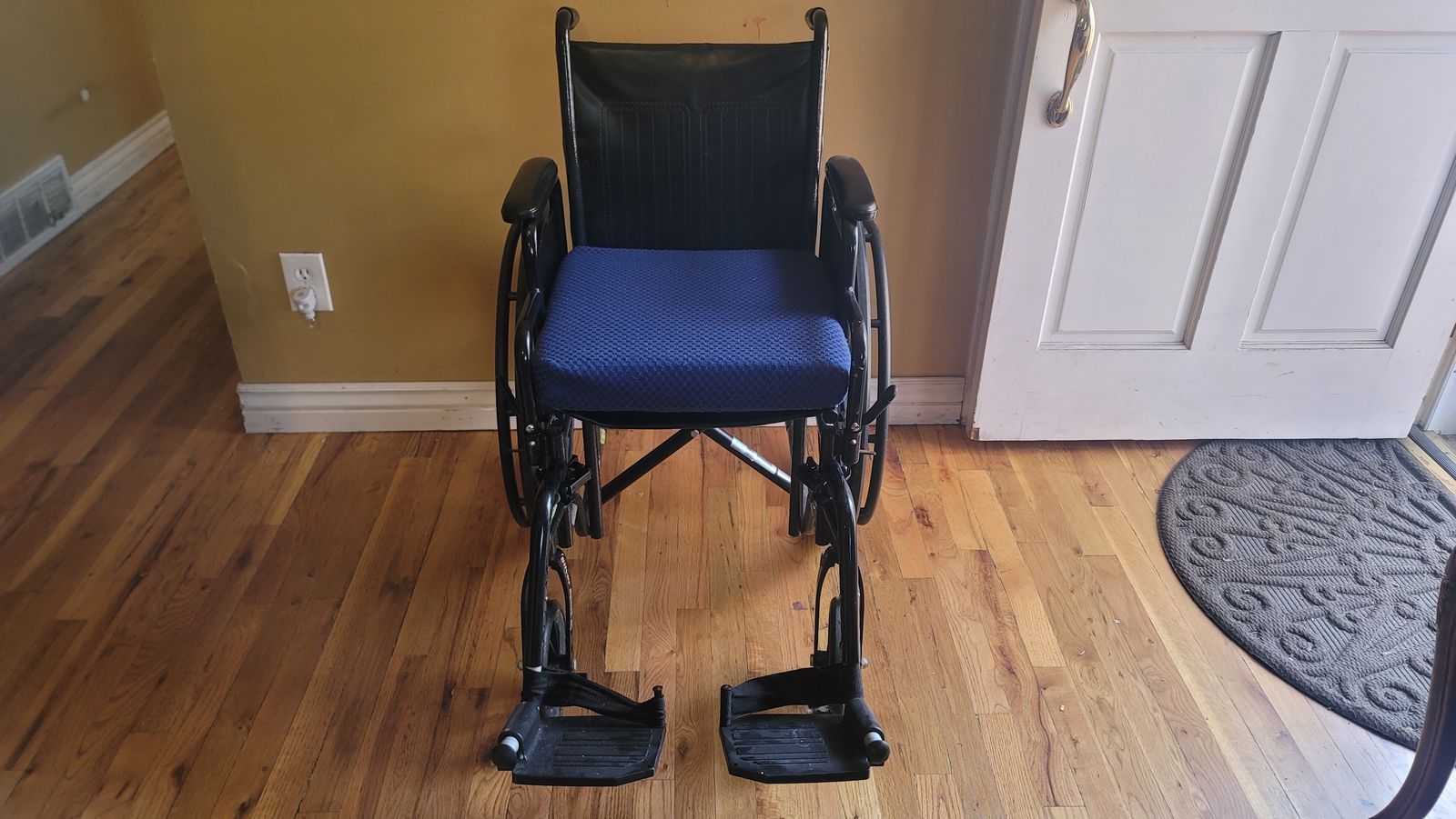 VenmoFoldable wheelchair with removeable leg rests and brakes, comes a cushion for support and comfort and an anti-slip cushion