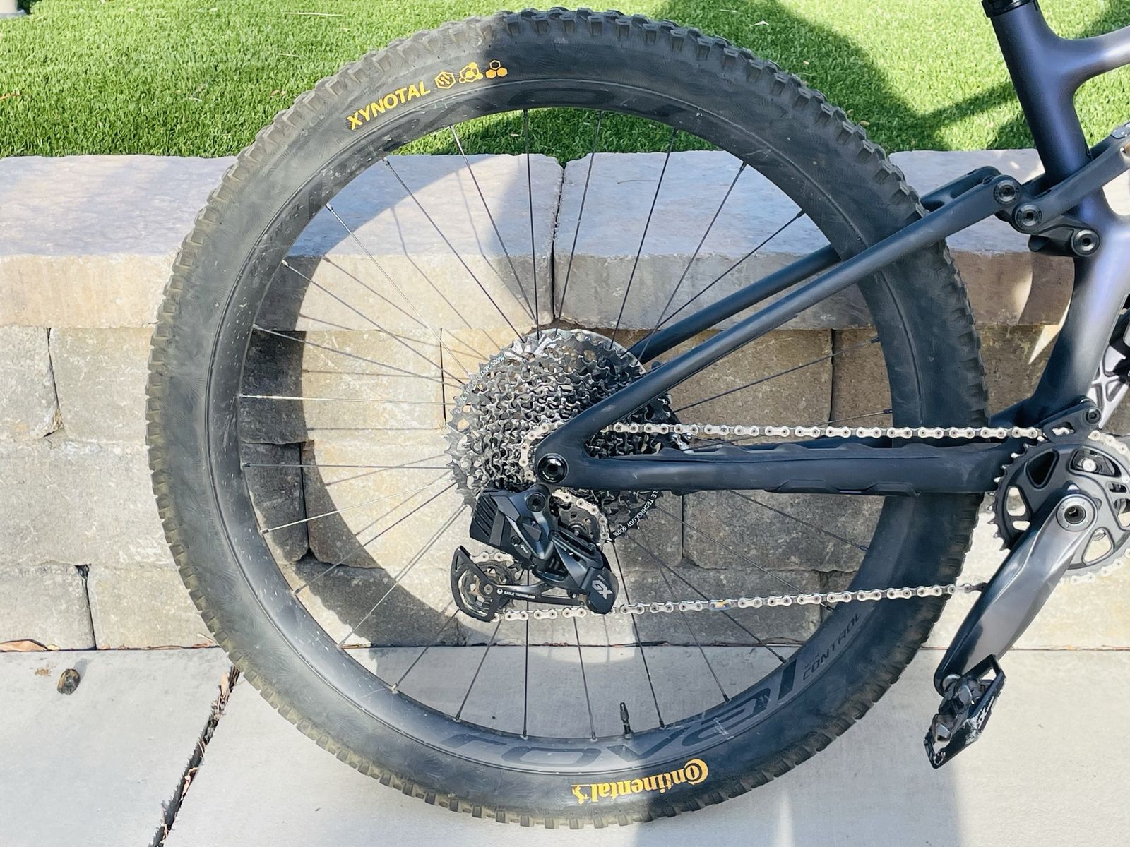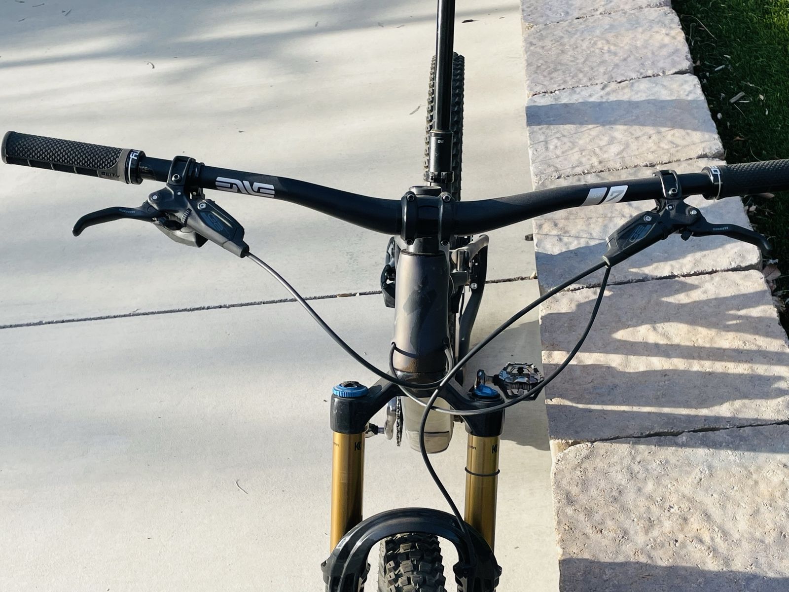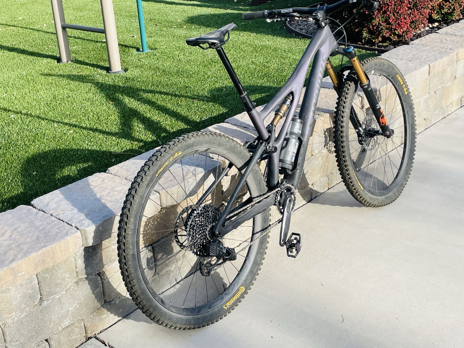 Parts list: AXS derailleur Wolf tooth dropper SRAM G2 disc brakes ENVE M7 Mtn Bars Fox 34 fork ROVAL Control wheels Deity grips Continental Xynotal Tires